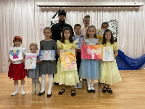В начале акции настоятель храма Вознесения Господня иерей Андрей Венза рассказал ребятам про земного Ангела – хранителя, того который оберегает, охраняет и защищает нас с момента нашего появления на свет – этот Ангел наша МАМА. Затем педагоги познакомили ребят с репродукциями, картинами, иконами Ангелов, определили их отличительные черты, познакомили с пословицами и высказываниями про Ангелов хранителей, посмотрели видео фильм. Во второй части акции ребята с педагогами взяли кисти, краски и, почувствовав себя талантливыми художниками, изобразили Ангелов, таких Ангелов которые являются носителями доброты, чистоты, любви и заботы.