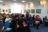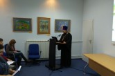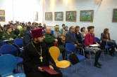 В открытии выставки приняли участие священнослужители, историки, писатели, работники образования и культуры г. Ханты-Мансийска. Председатель отдела социального служения и благотворительности Ханты-Мансийской епархии иерей Леонид Бартков выступил с сообщением о житии святого великомученика и победоносца Георгия , председатель отдела религиозного образования и катехизации Ханты-Мансийской епархии иерей Димитрий Губанищев рассказал о традициях русского воинства в тесной связи с церковной историей, глава военно- патриотического Георгиевского клуба Вадим Акимов поделился опытом создания костюмированных реконструкций великий исторических сражений и подвиге святого Александра Невского. Участники встречи, большинство которых составляли школьники и воспитанники кадетских классов, узнали и о славном доблестном пути великих полководцев Димитрия Донского и Федора Ушакова, прославленного в лике святых как Феодор Санаксарский. По традиции участникам мероприятия священники подарили святое Евангелие.