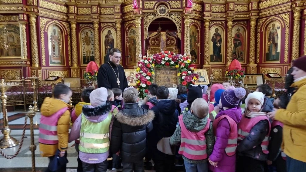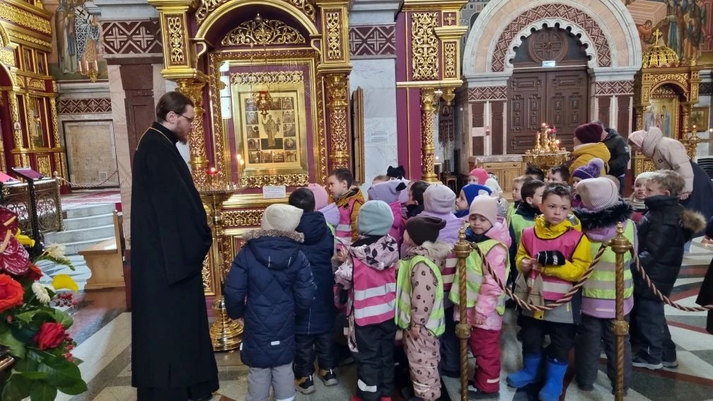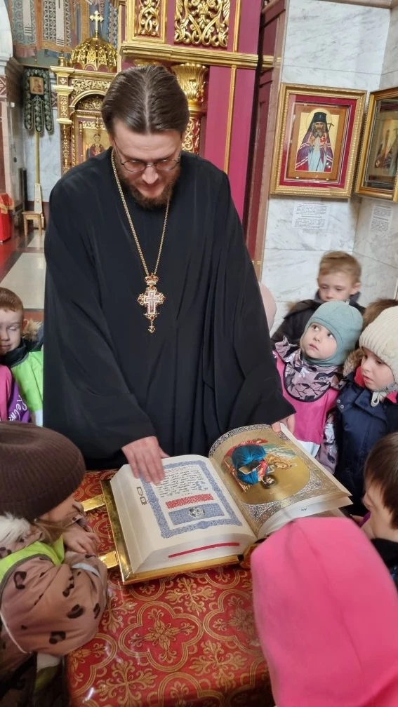 16–17 апреля ключарь Воскресенского Кафедрального собора иерей Александр Петюр встретился с ребятами и воспитателями детского сада №11 «Радуга». В первый день встреча прошла на территории детского сада и была посвящена событию Воскресения Христова. 17 апреля ребята пришли на экскурсию в Воскресенский Кафедральный собор. Ребята смогли получить новые знания о христианстве, об убранстве храма и празднике Пасхи.