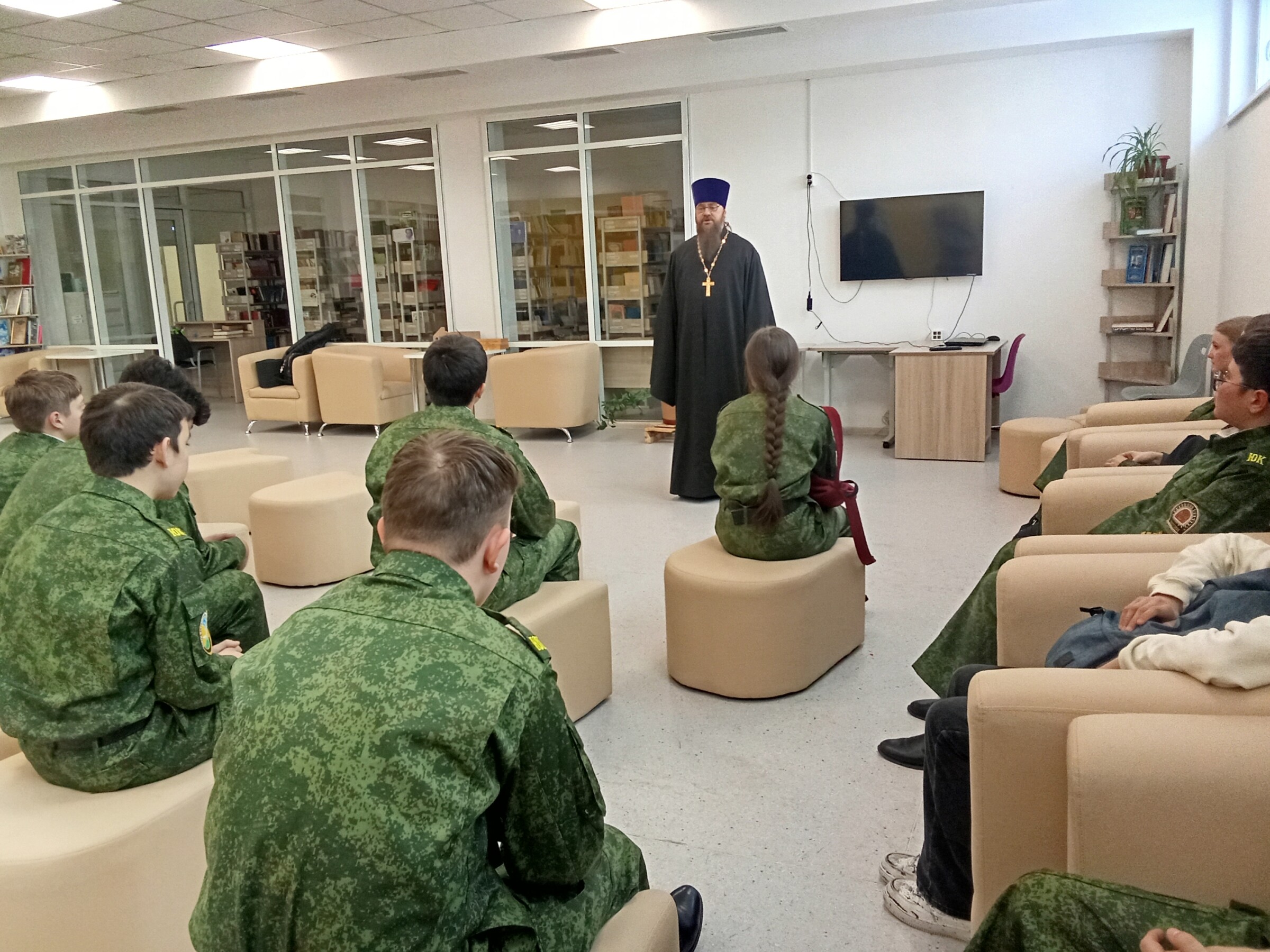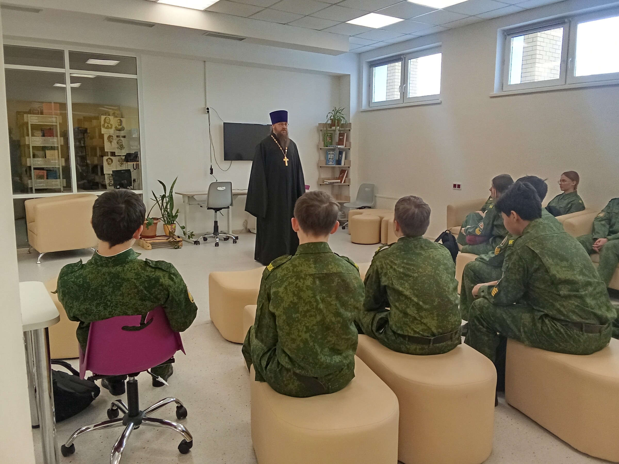 В Ханты-Мансийской школе №8 священник побеседовал с учащимися кадетского класса