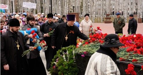 9 мая духовенство Ханты-Мансийской епархии с учащимися православной гимназии возложили цветы к мемориалу Победы и почтили память всех усопших воинов. После утренней литургии крестным ходом клирики и миряне Ханты-Мансийской епархиии направились на центральную площадь , где приняли участие в торжественном митинге , посвящённом 67-ой годовщине Великой Победы. «Нет выше любви, как если кто положит душу свою за други своя, — эти евангельские слова точно отражают суть праздника Победы»-, отметил в проповеди секретарь Ханты-Мансийской епархии протоиерей Сергий Кравцов. Царствие небесное и Вечная память всем от века погибшим и положившим душу за други своя!