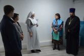 Сестра милосердия Ирина Колычева провела для гостей ознакомительную экскурсию. Официальная часть завершилась вручением благодарственных писем и молебном на начало благого дела. Приятным бонусом праздничного утра стало чаепитие.