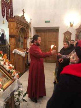 В храм Покрова Божией Матери г. Покачи принесён Благодатный Огонь.