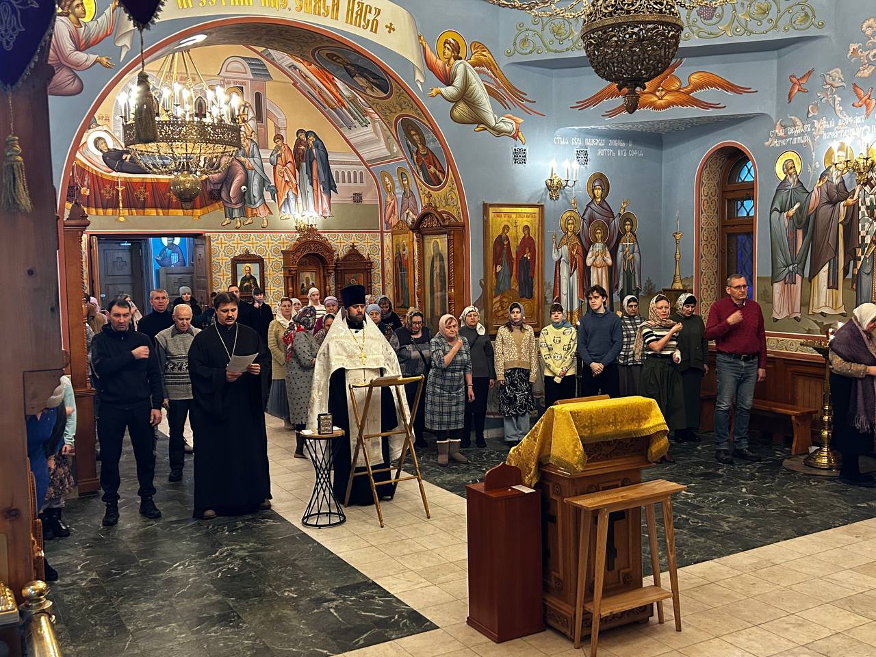 Настоятель храма, иерей Виталий Габак, обратился к молящимся с пастырским словом. Он напомнил, что Новый год — это не только время подведения итогов и загадывания желаний, но и прекрасная возможность поблагодарить Бога за все прожитое и с чистым сердцем, с надеждой на Его милость шагнуть в будущее.