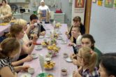 А пока дети развлекались и обучались, их родители находились на мастер-классе по кулинарии, учились готовить тыквенный пирог. Чаепитие с вкуснейшим пирогом стало завершающим аккордом встречи.
