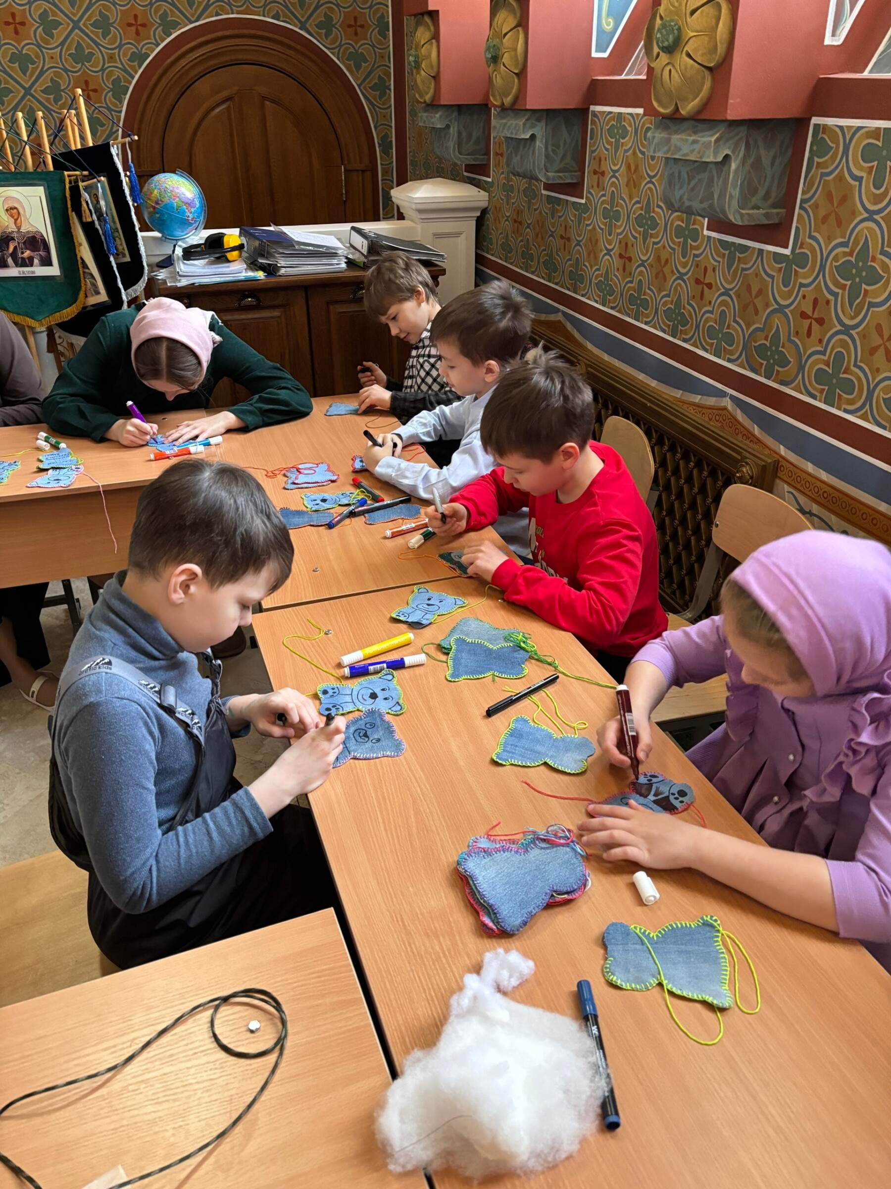 Ребята постарше узнали как и для чего делают тактильных мишек для военного госпиталя.
