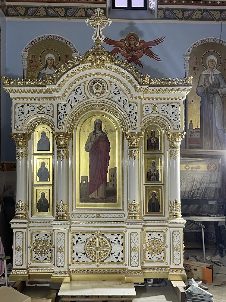 В середине сентября в храме святых благоверных князей Петра и Февронии Муромских г. Пыть- Яха состоялось одно из самых долгожданных для прихожан событий – был установлен иконостас. Также, как и весь храм, он выглядит торжественно и благородно. Прекрасный деревянный иконостас с бело- позолоченной резьбой изготовлен и установлен на пожертвование генерального директора компании « Экотон» Ярослава Петровича Мельник. Благодаря его трудам и стараниям стало возможным столь быстрое строительство и убранство храма. Уже во время работ в храме начали проходить службы. Прихожане гордятся своим храмом и благодарят Бога за такую милость.