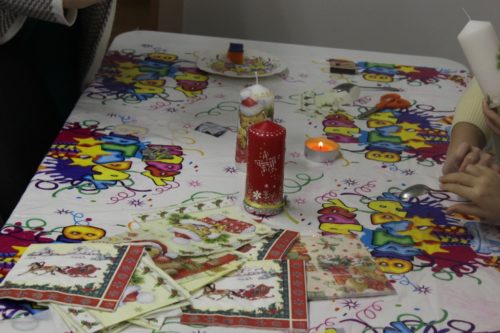 Это было заключительное мероприятие в рамках многодневной благотворительной акции «Свет Рождественской звезды». Ведущие мастер-классов – Добрынина Дамира и Плешкова Елена поделились навыками своего мастерства с пришедшими в храм детками. В этот раз, в сравнении с прошлым годом, мероприятие проходило в двух аудиториях одновременно: в одной можно было научиться декорированию свечей, а в другой – изготовлению елочных игрушек из фетра и подарочных открыток.