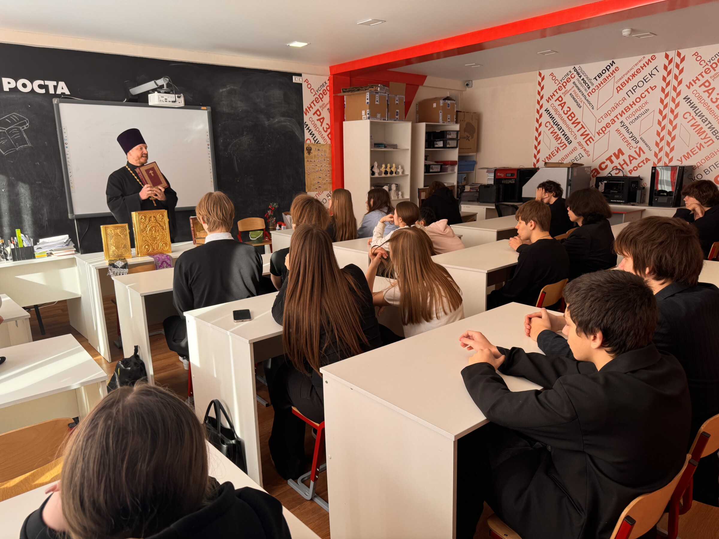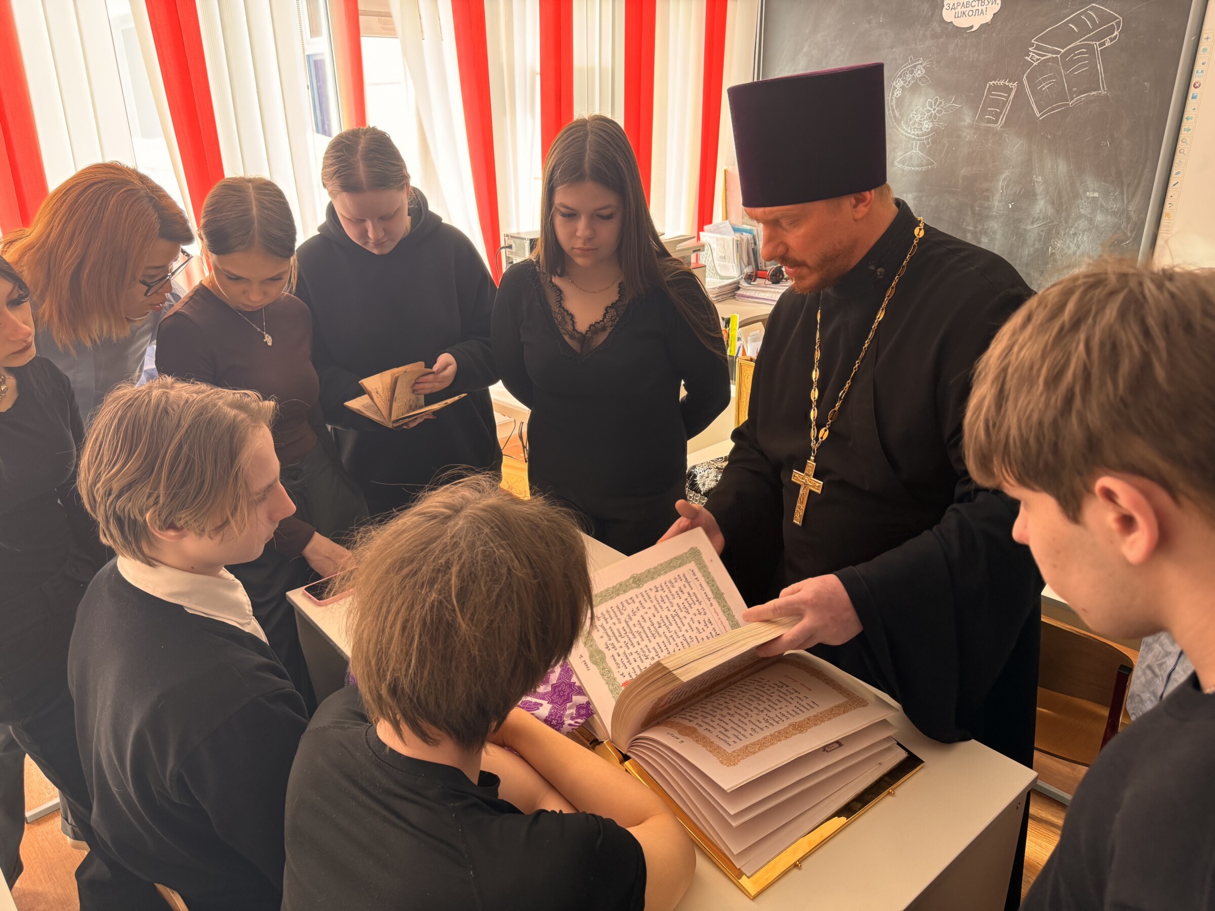 12 марта настоятель храма святителя Николая Чудотворца в Излучинске иерей Георгий Болотов провел занятие с учащимися девятого класса Средней школы №1. Священник рассказал ребятам о Священном Писании — Евангелие, посланиях апостолов и других книгах Библии. Показал богослужебные тексты и старинные книги, среди которых была даже рукописная. Мероприятие было приурочено ко Дню Православной книги.