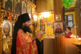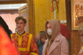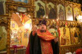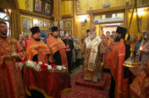 Его Высокопреосвященству сослужили: благочинный Сургутского районного благочиния протоиерей Владислав Бронников, настоятель храма протоиерей Георгий Кошелев, секретарь Ханты-Мансийской епархии игумен Антоний (Кирпичев), диакон Даниил Матвеев.