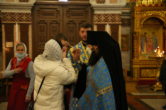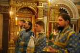 Его Высокопреосвященству сослужили: секретарь Ханты-Мансийской епархии игумен Антоний (Кирпичев), ключарь Воскресенского кафедрального собора иерей Александр Петюр, духовенство г.Ханты-Мансийска.