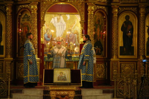 В канун дня памяти иконы Божией Матери, именуемой «Отрада и Утешение» митрополит Ханты-Мансийский и Сургутский Павел совершил Всенощное бдение в Воскресенском кафедральном соборе г. Ханты-Мансийска