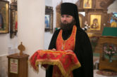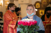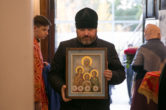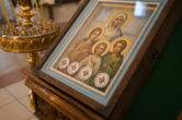 Перед началом богослужения, для молитвенного поклонения верующих, в храм была принесена икона мцц. Веры, Надежды, Любови и матери их Софии, с частицами их святых мощей.