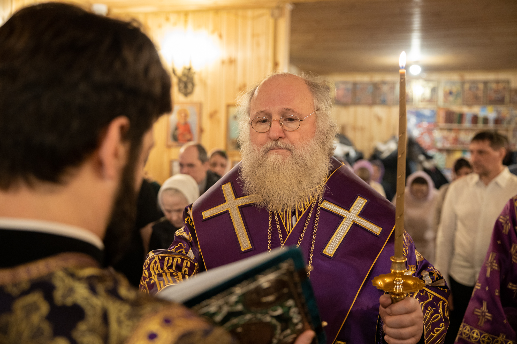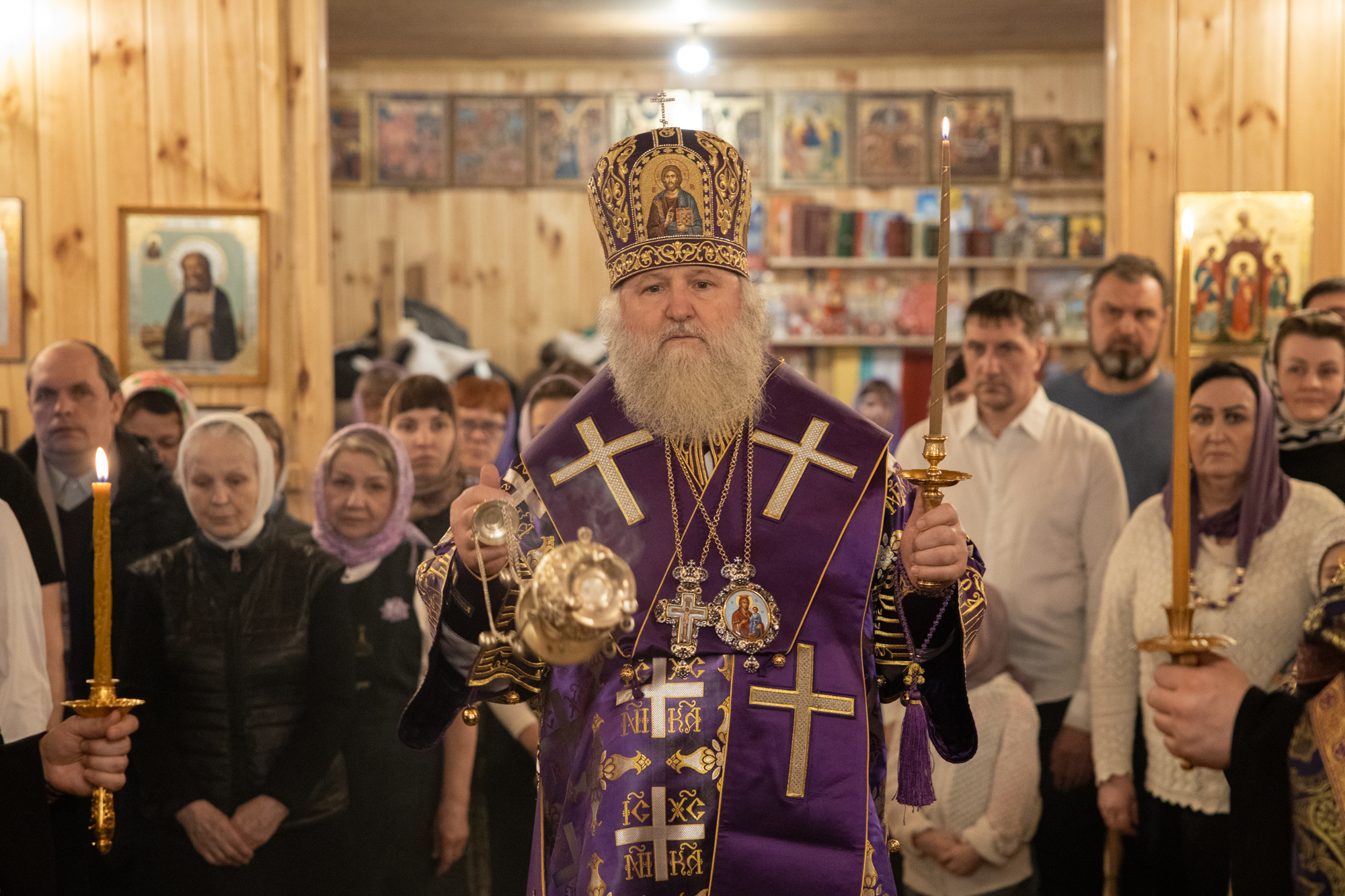 В канун дня памяти обретения главы Иоанна Предтечи митрополит Павел совершил полиелей во временном храме в честь преподобного Сергия Радонежского г. Нижневартовска
