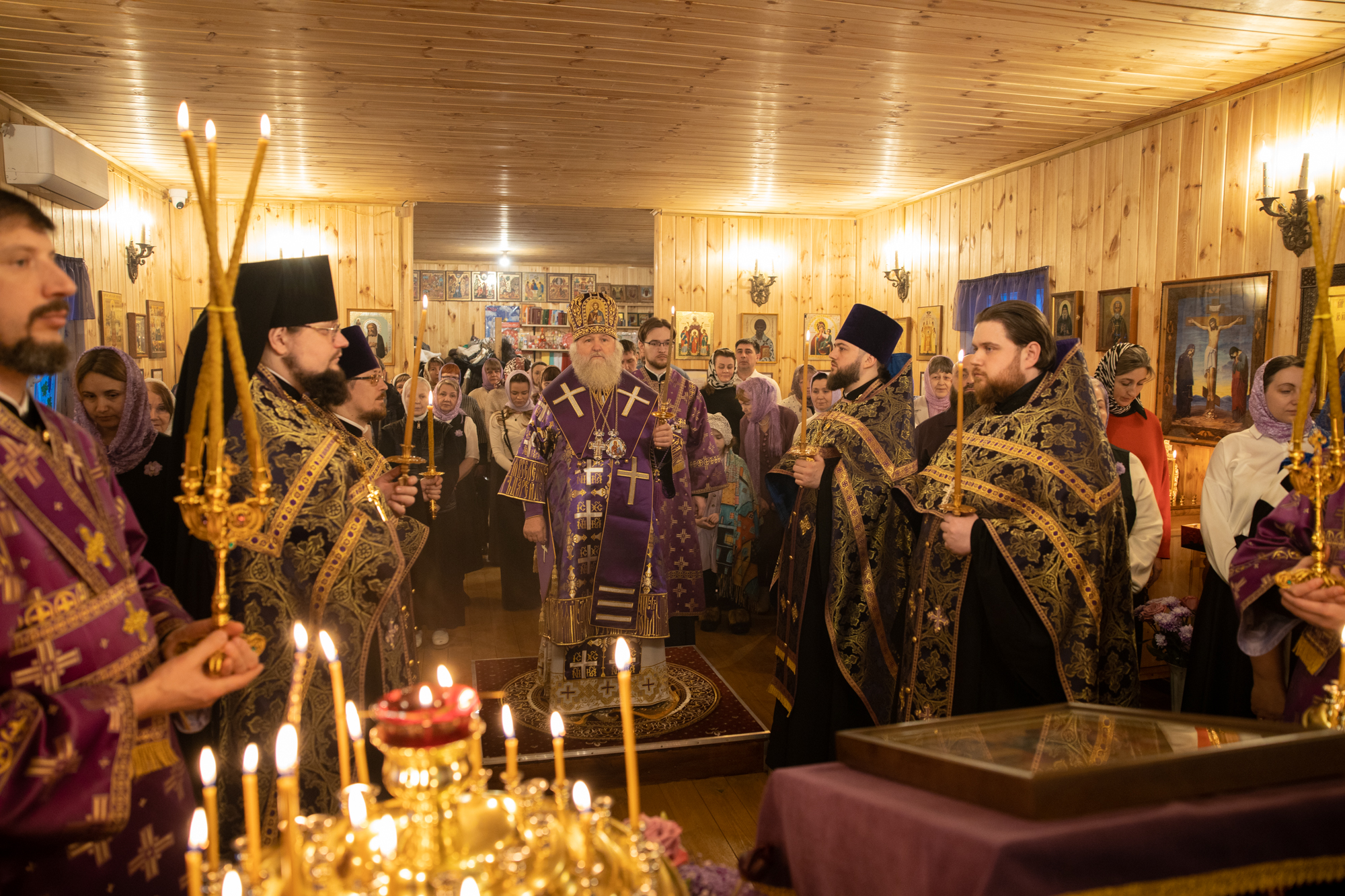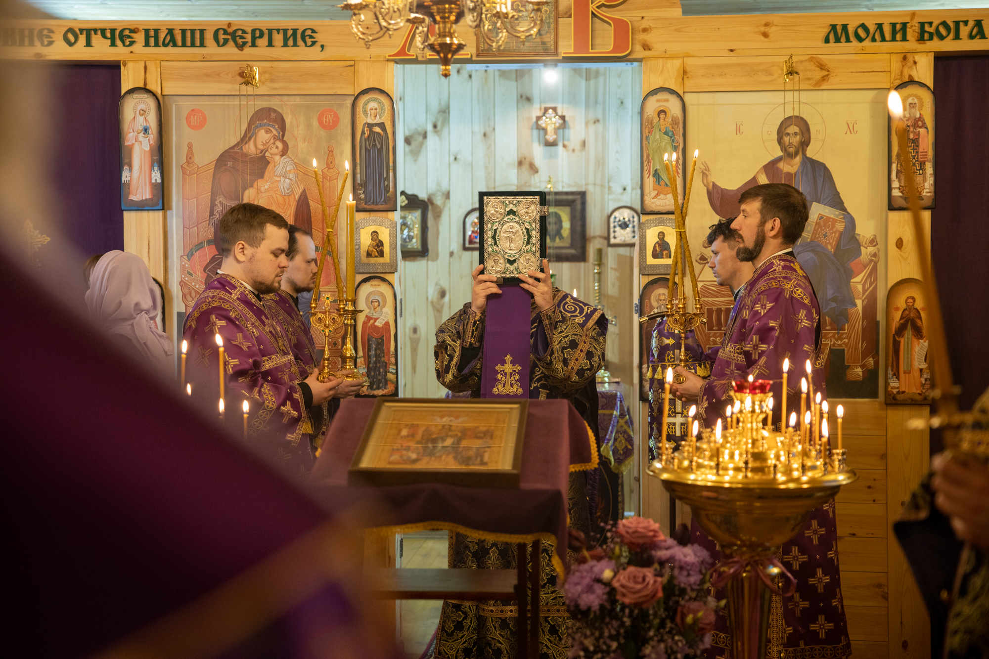 8 марта 2026 года, в канун дня памяти обретения главы Иоанна Предтечи, митрополит Ханты-Мансийский и Сургутский Павел совершил полиелей во временном храме в честь преподобного Сергия Радонежского г. Нижневартовска.