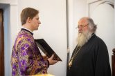 «Дорогие отцы, братья и сестры, от сердца души хотел всех поблагодарить за общие молитвы! Мы сегодня собрались для того, чтобы вознести горе престолу Божию наши с вами просьбы, молитвы за Отечество наше, за каждого из нас, чтобы пройти поприще Великого поста с пользой. Сегодня церковь отмечает память Крестителя Спасова Иоанна, пророка, который, как сказано в Священном Писании, уготовал путь пришествию Христа Спасителя в мир. Он крестил водою, крестил во оставление грехов, приготавливал к принятию самого Христа, который будет крестить Духом Святым. Отмечая его память, мы сегодня, в Великую Четыредесятницу, готовимся к Воскресению Христову — самому главному празднику, и мы приготавливаем себя к этой встрече, чтобы нам немножко стать, лучше, чище, достойно подготовиться к пришествию Христа.