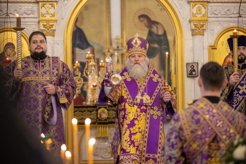 В канун дня памяти обретения главы Иоанна Предтечи, митрополит Ханты-Мансийский и Сургутский Павел совершил полиелей в храме в честь вмч. и целителя Пантелеимона г. Нижневартовска
