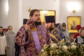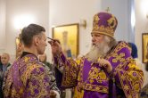 Его Высокопреосвященству сослужили: благочинный Нижневартовского городского благочиния протоиерей Сергий Шевченко, настоятель храма иерей Олег Гордеев, секретарь Ханты-Мансийской епархии игумен Антоний (Кирпичев), иерей Владимир Макаров. Диаконский чин возглавил диакон Даниил Матвеев.
