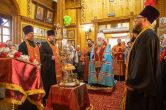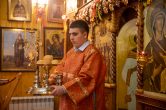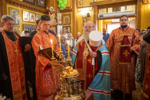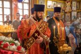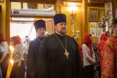 Его Высокопреосвященству сослужили: благочинный Сургутского районного благочиния протоиерей Владислав Бронников, настоятель храма протоиерей Георгий Кошелев, секретарь Ханты-Мансийской епархии игумен Антоний (Кирпичев), иерей Сергий Мартынюк, диакон Даниил Матвеев.