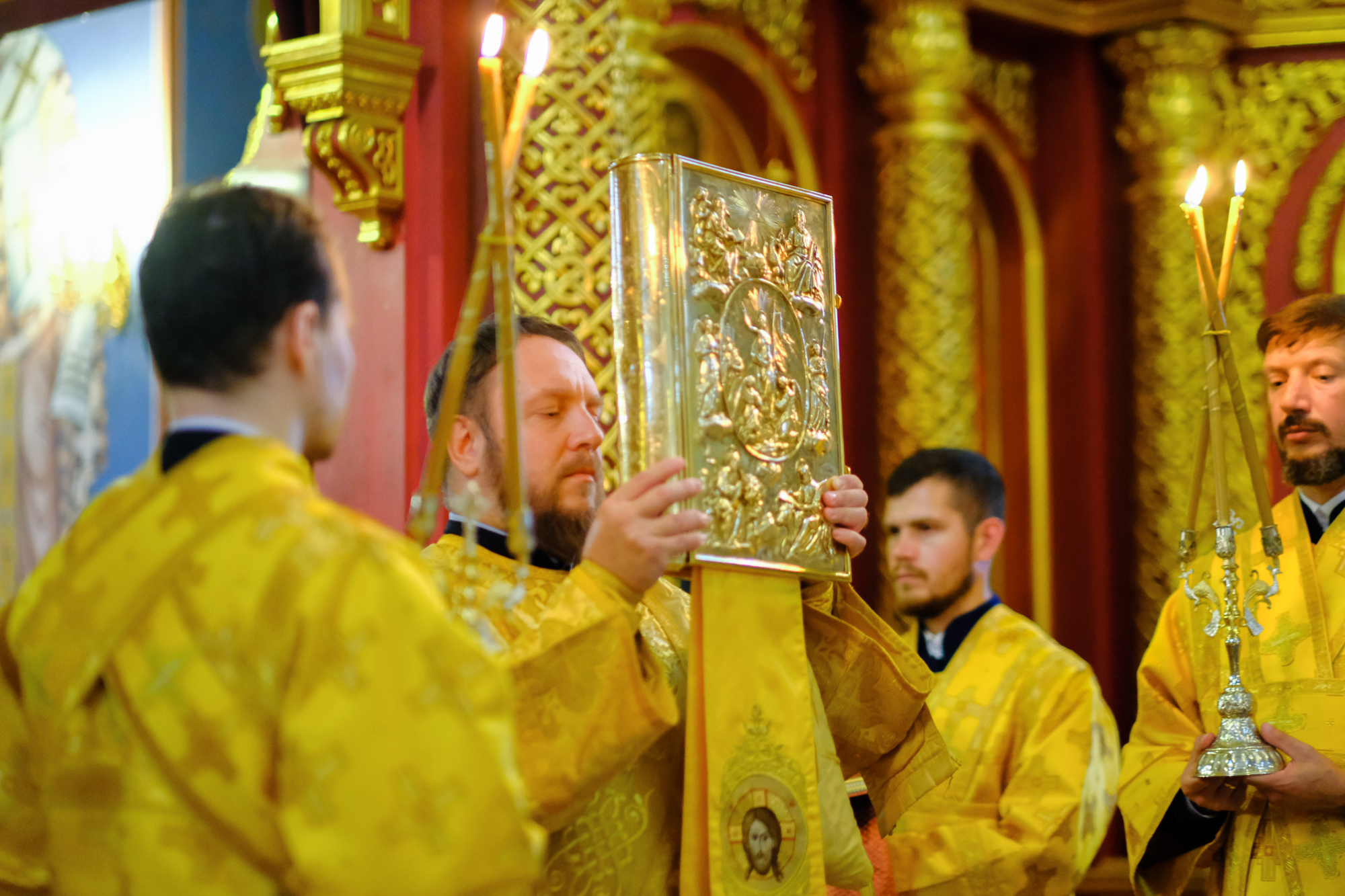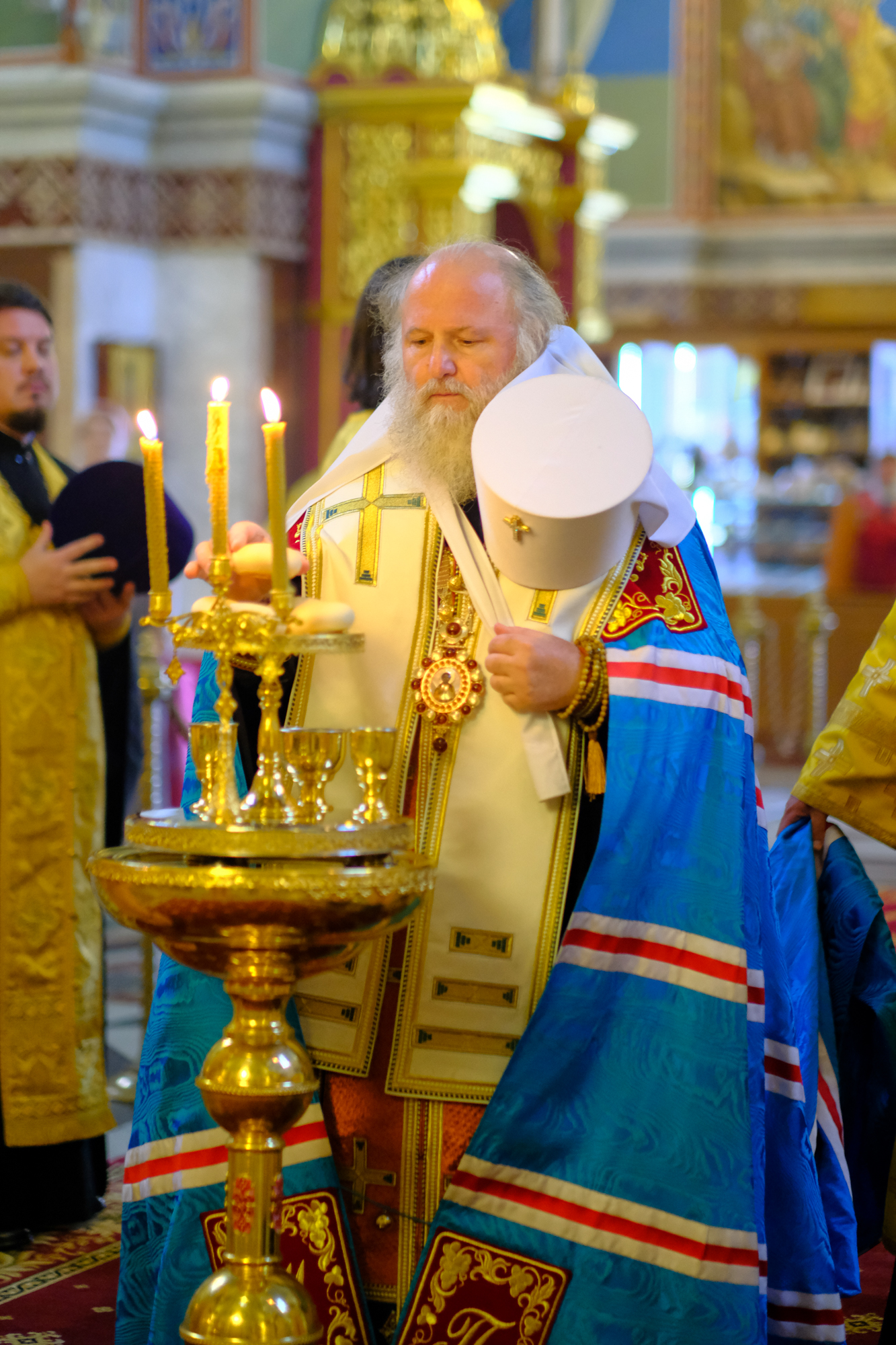 Его Высокопреосвященству сослужили: благочинный Ханты-Мансийского благочиния иерей Димитрий Губанищев, духовенство собора.