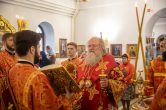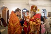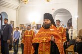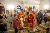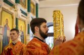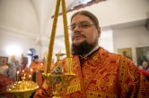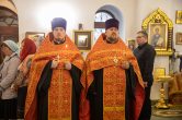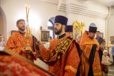 Его Высокопреосвященству сослужили: благочинный Сургутского районного благочиния протоиерей Владислав Бронников, секретарь Ханты-Мансийской епархии игумен Антоний (Кирпичев), настоятель храма иерей Александр Сажин. Диаконский чин возглавил диакон Даниил Матвеев.