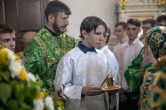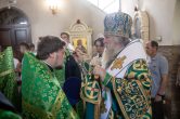 Его Высокопреосвященству сослужили: секретарь Ханты-Мансийской епархии игумен Антоний (Кирпичев), настоятель храма иерей Александр Сысоев, иерей Даниил Шумбасов, иерей Антоний Долгушин. Диаконский чин возглавил диакон Алексей Полянцев.