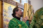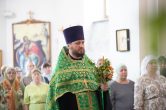 «Дорогие братья и сестры, позвольте от сердца, от души поздравить всех с праздником Святой Троицы! Этот Троицкий храм, и посёлок Пойковский находятся под покровом Святой Троицы. Сам Господь хранит, Сам Господь являет Себя, ибо Сам по Вознесении обещал своим ученикам «сниспослать с небесе от Отца — Духа Святаго Утешителя». И конечно, мы совершаем праздничные Богослужения, украшаем храм зелеными побегами, и ожидаем, что Господь ниспошлёт нам, грешным, Духа Святаго, ибо Дух живит, Святой Дух особым образом обитает в храмах Божьих. Всех вас, мои дорогие, благодарю за общие молитвы, пусть Всемилостивый Господь, как некогда своим ученикам и апостолам посылал Святаго Духа, ниспослал Его и нам, чтобы Он ограждал нас от враг видимых и невидимых, от смертоносныя раны и болезни. И Он будет охранять нас, и не оставит, если мы будем прибегать к Нему, будем молиться и просить. Сегодня вернулась в богослужение молитва «Царю Небесный…», которая не совершается от Пасхи до Троицы, и возрадовалась наша душа! Всех вас поздравляю с престольным днём, пусть Господь хранит нас в здравии и долгоденствии, не оставляет на нашем жизненном пути! Храни всех Господь!»