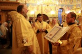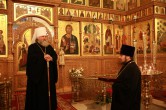 По окончании богослужения протоиерей Гамм Николай поздравил его Высокопреосвященство с двадцатилетием служения в священном сане и от лица духовенства и прихожан кафедрального собора преподнес в дар архиерейский крест и панагию.