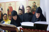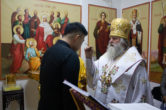 Его Высокопреосвященству сослужили: заведующий канцелярии Ханты-Мансийской епархии иерей Сергий Нагорный; клирик храма в честь блж. Матроны Московской в г. Давао иеромонах Корнилий (Молев), клирик Ханты-Мансийской епархии диакон Антоний Долгушин.