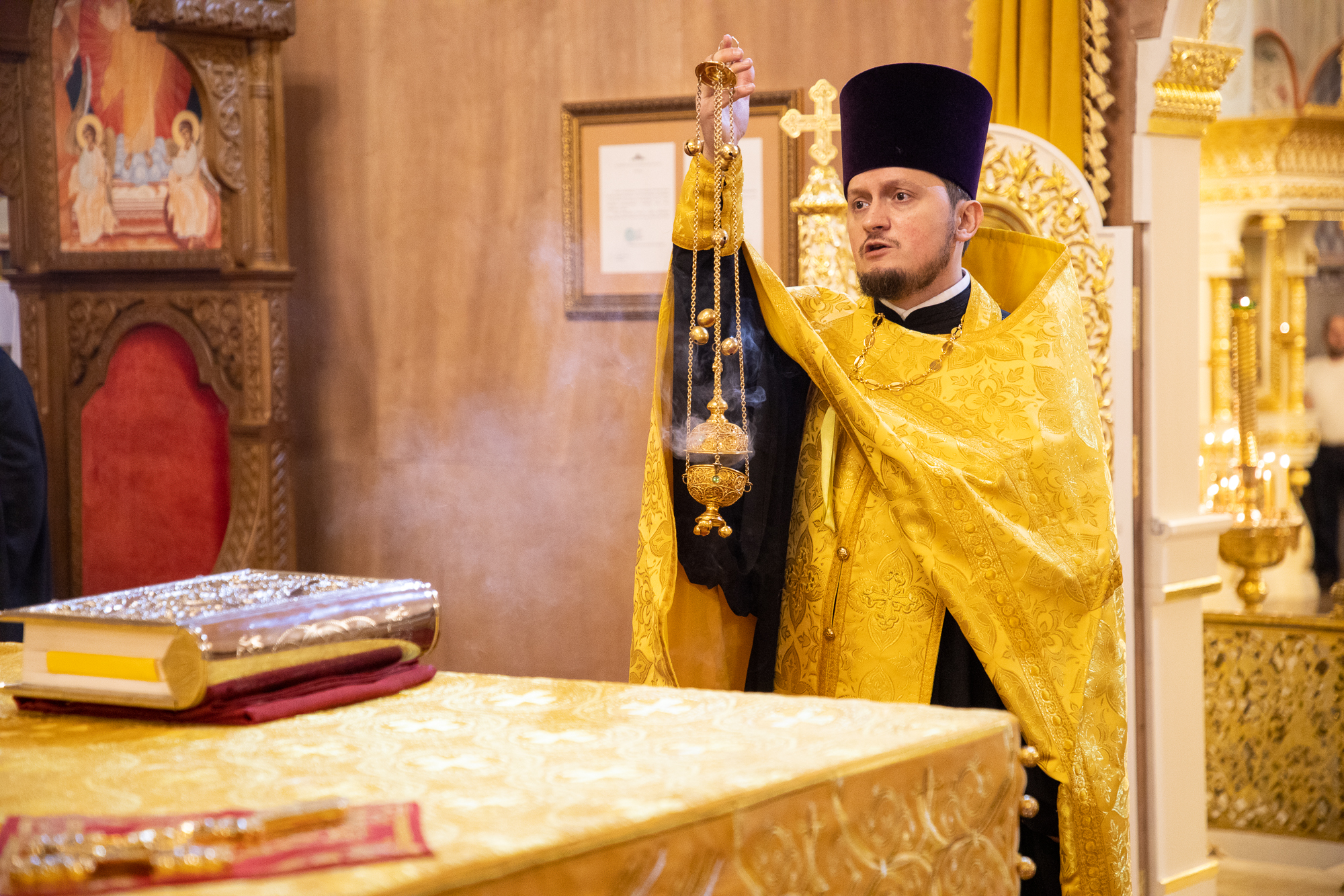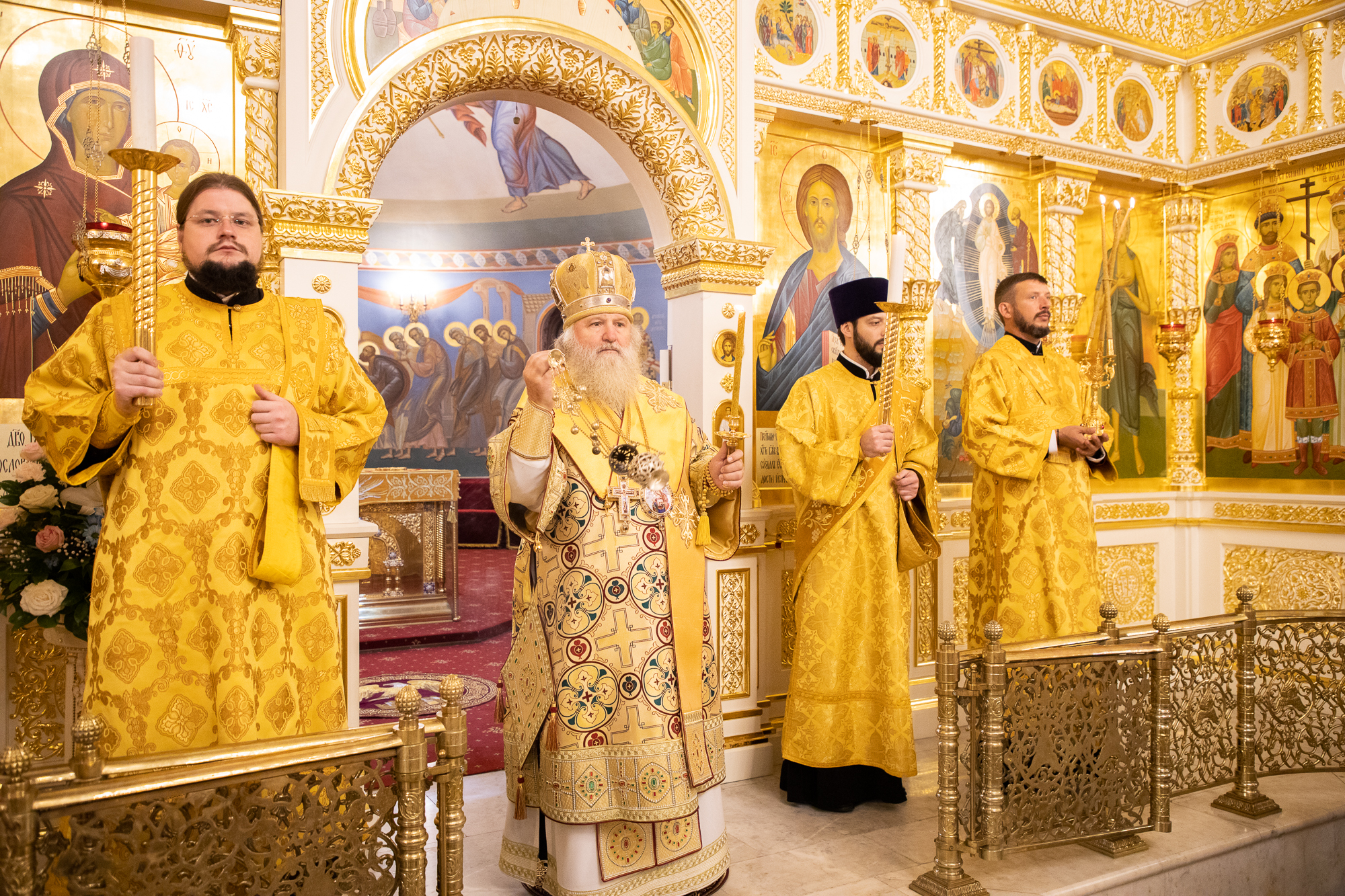 Его Высокопреосвященству сослужили: секретарь Ханты-Мансийской епархии игумен Антоний (Кирпичев), ключарь собора иерей Дионисий Безносов, духовенство собора. Диаконский чин возглавил диакон Даниил Матвеев.