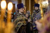 Его Высокопреосвященству сослужили: благочинный Нижневартовского городского благочиния протоиерей Сергий Шевченко, настоятель храма протоиерей Сергий Бандурин, секретарь Ханты-Мансийской епархии игумен Антоний (Кирпичев). Диаконский чин возглавил диакон Даниил Матвеев.