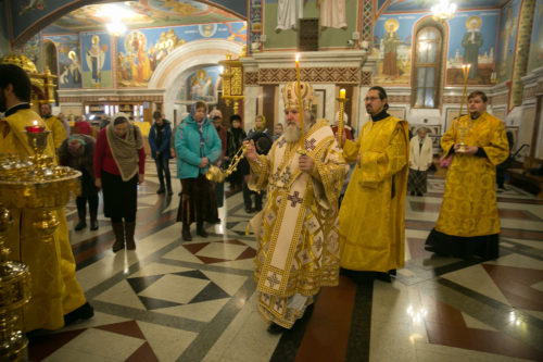 В канун Недели 23-й по Пятидесятнице, митрополит Ханты-Мансийский и Сургутский Павел совершил Всенощное бдение в Воскресенском кафедральном соборе г. Ханты-Мансийск