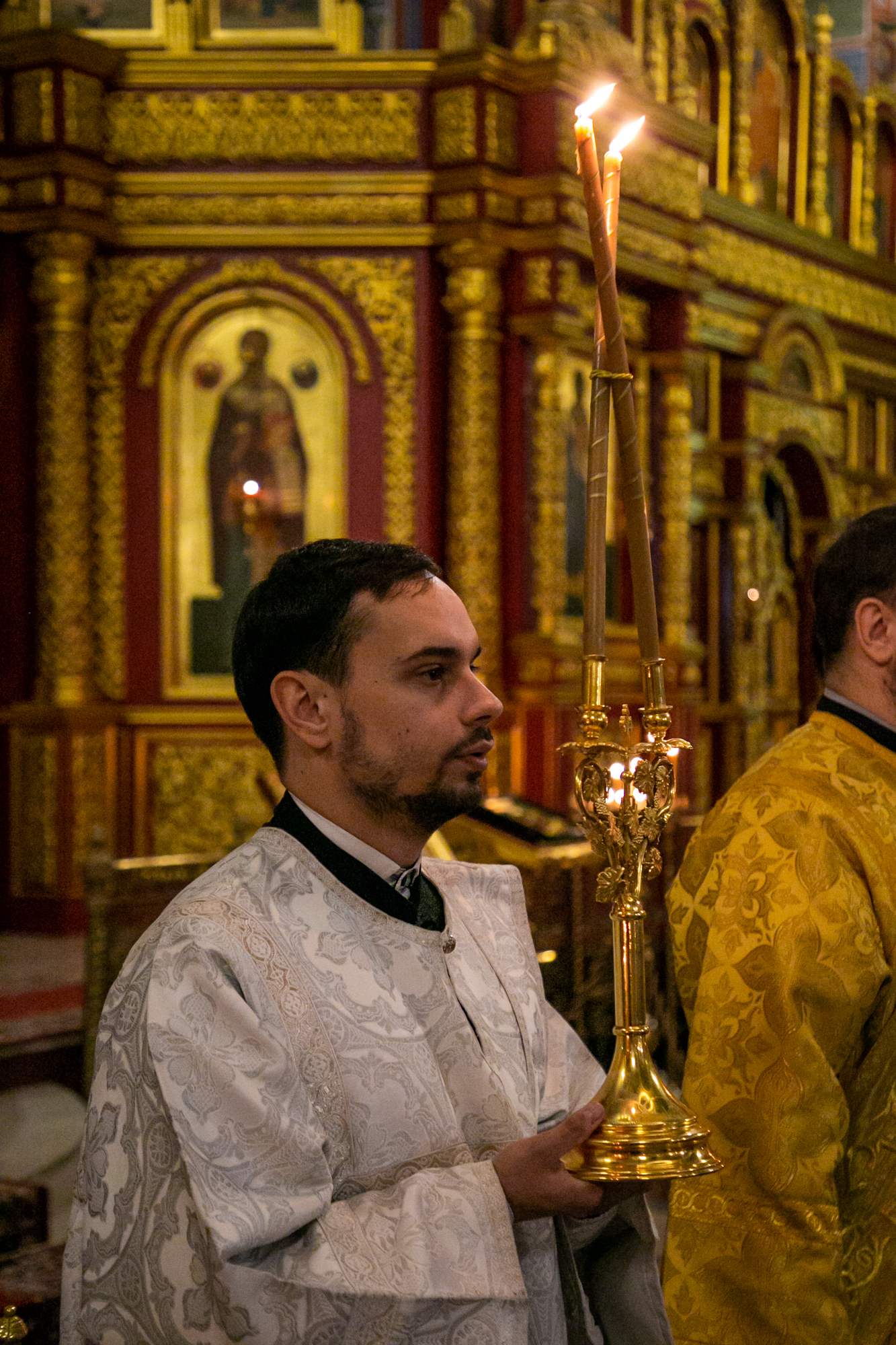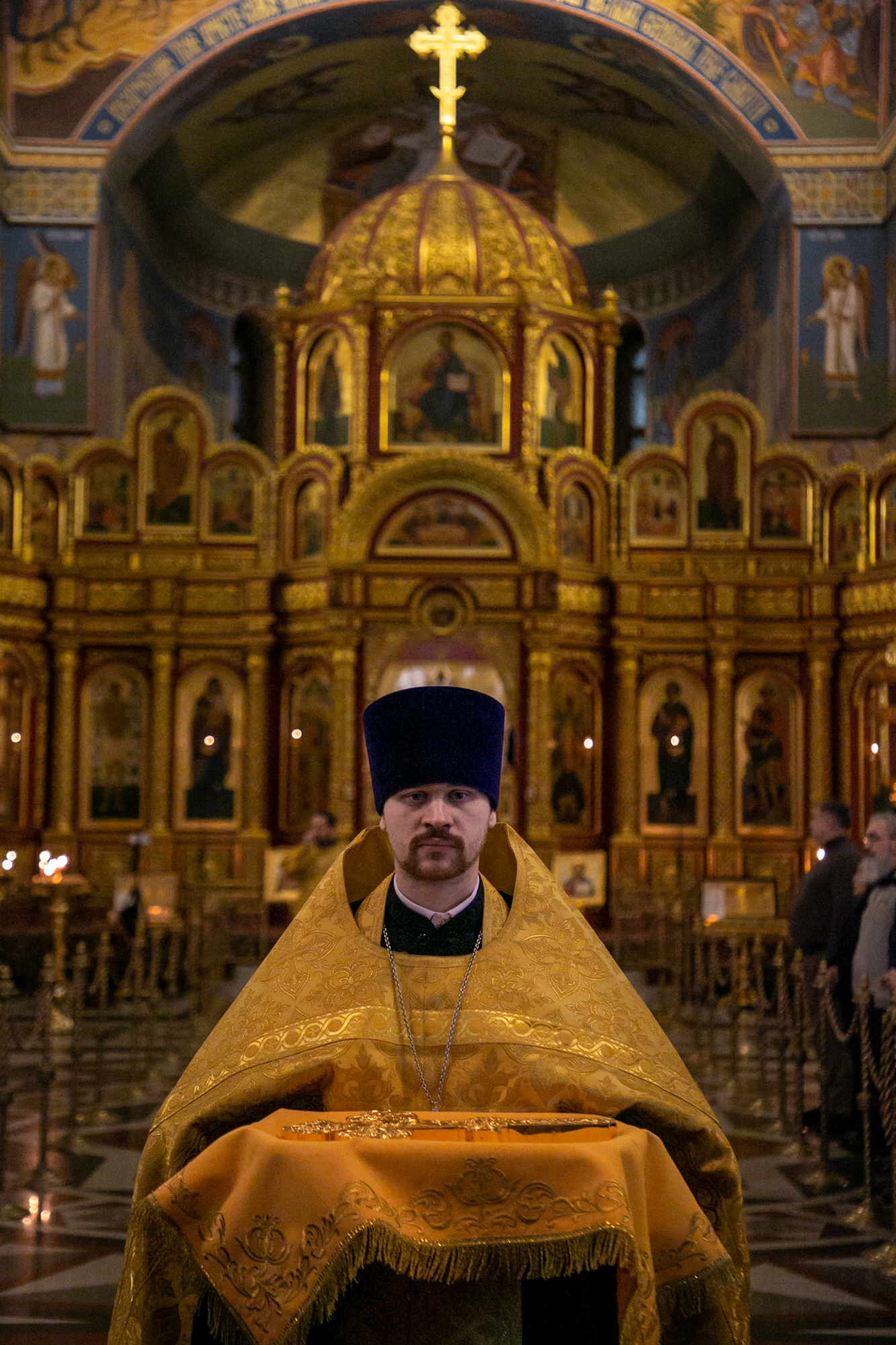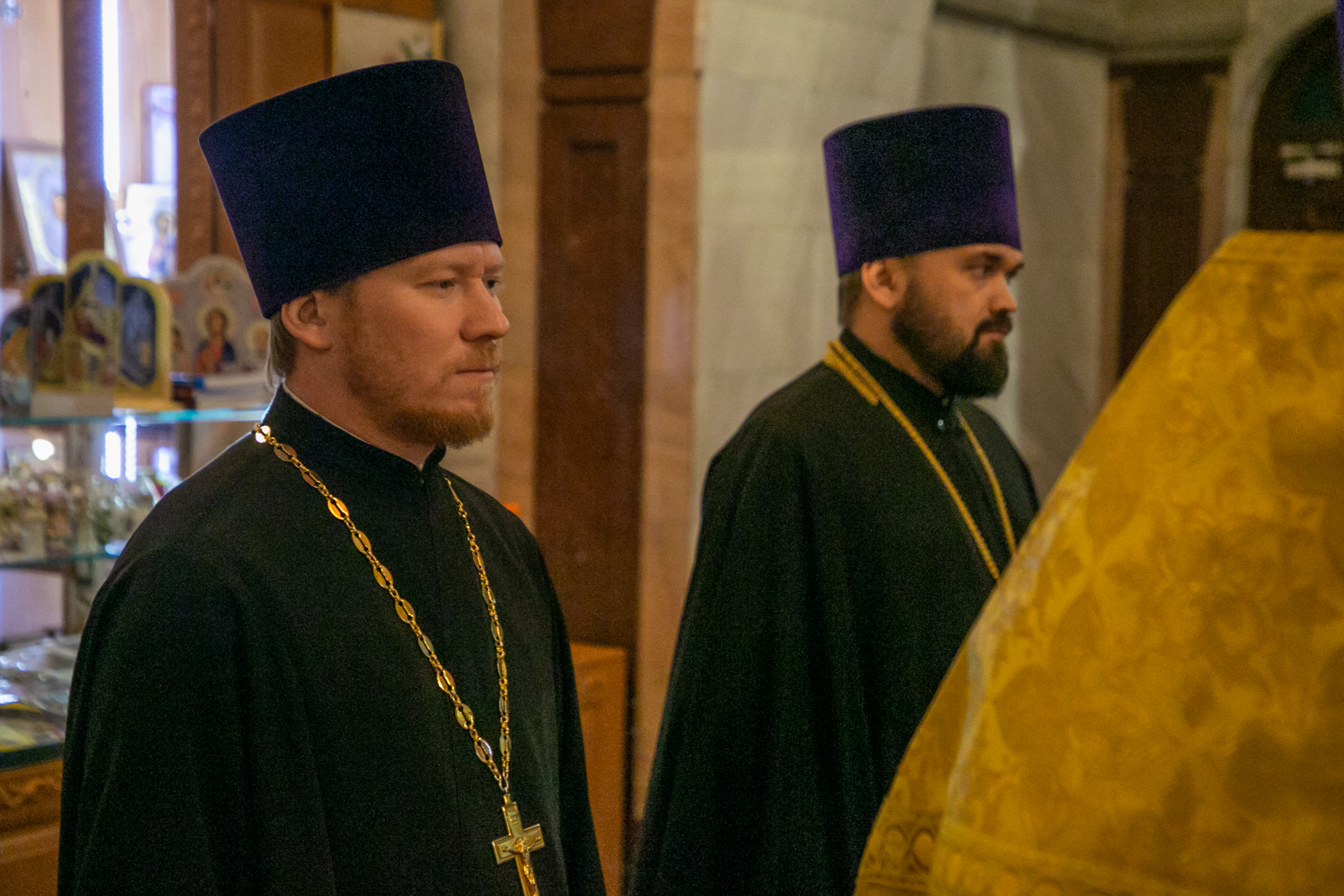 Его Высокопреосвященству сослужили: благочинный Ханты-Мансийского благочиния иерей Димитрий Губанищев, ключарь собора иерей Александр Петюр, духовенство собора.