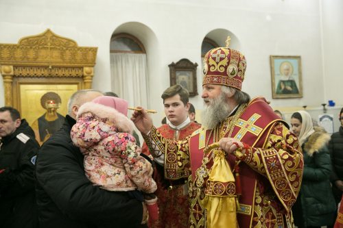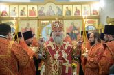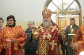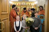По окончании Богослужения владыка обратился к собравшимся: «Дорогие отцы, братья и сестры, сердечно благодарю всех за общие молитвы и позвольте поздравить всех с праздником Воскресения Господа нашего Иисуса Христа, а также всех именниц, что носят святое имя Варвары, чтобы небесная поровительница путеводительствовала и хранила вас!