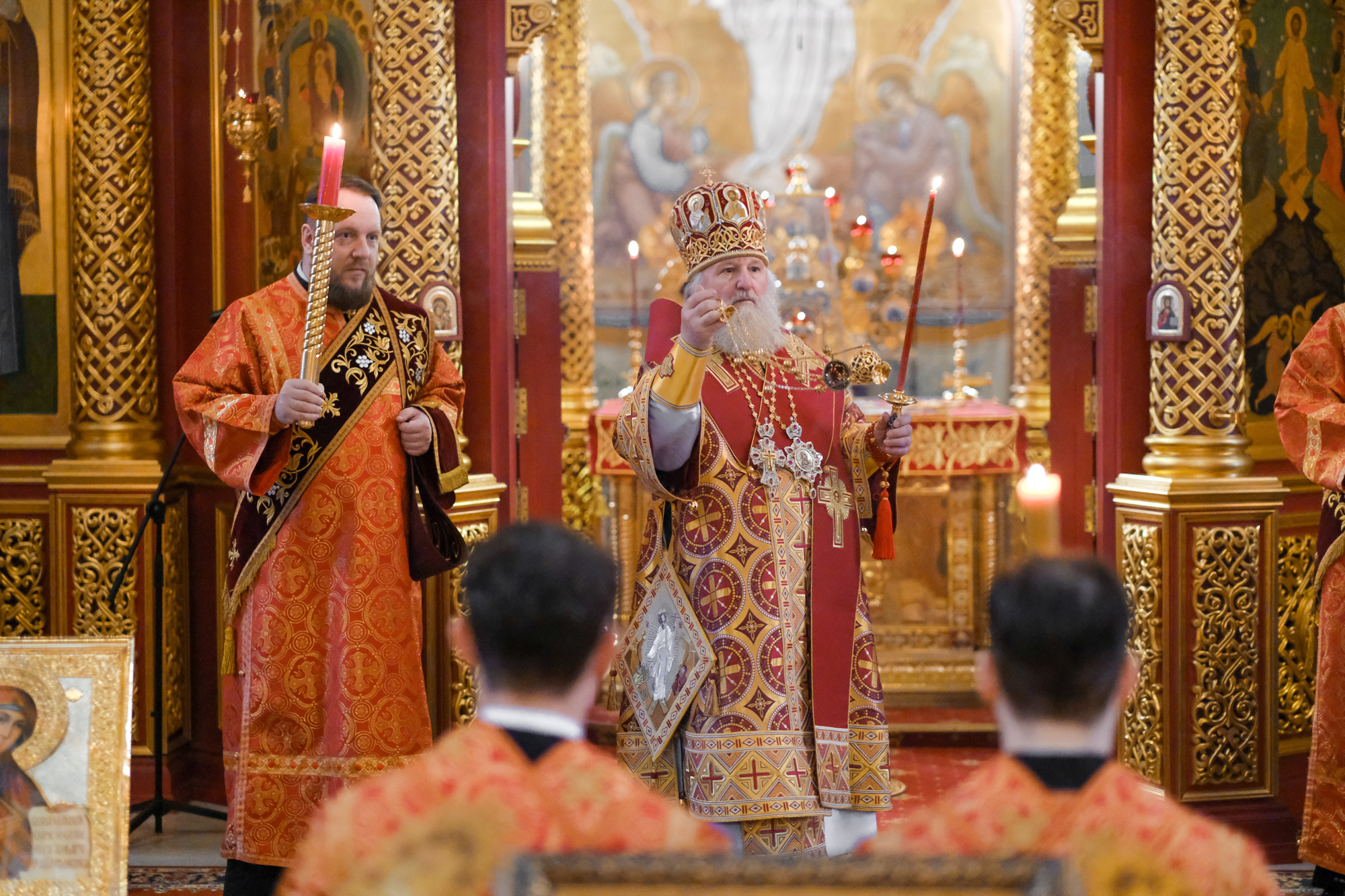 25 апреля 2026 года, в канун Недели 3-й по Пасхе, святых жен-мироносиц, митрополит Ханты-Мансийский и Сургутский Павел совершил всенощное бдение в Воскресенском кафедральном соборе г. Ханты-Мансийска.