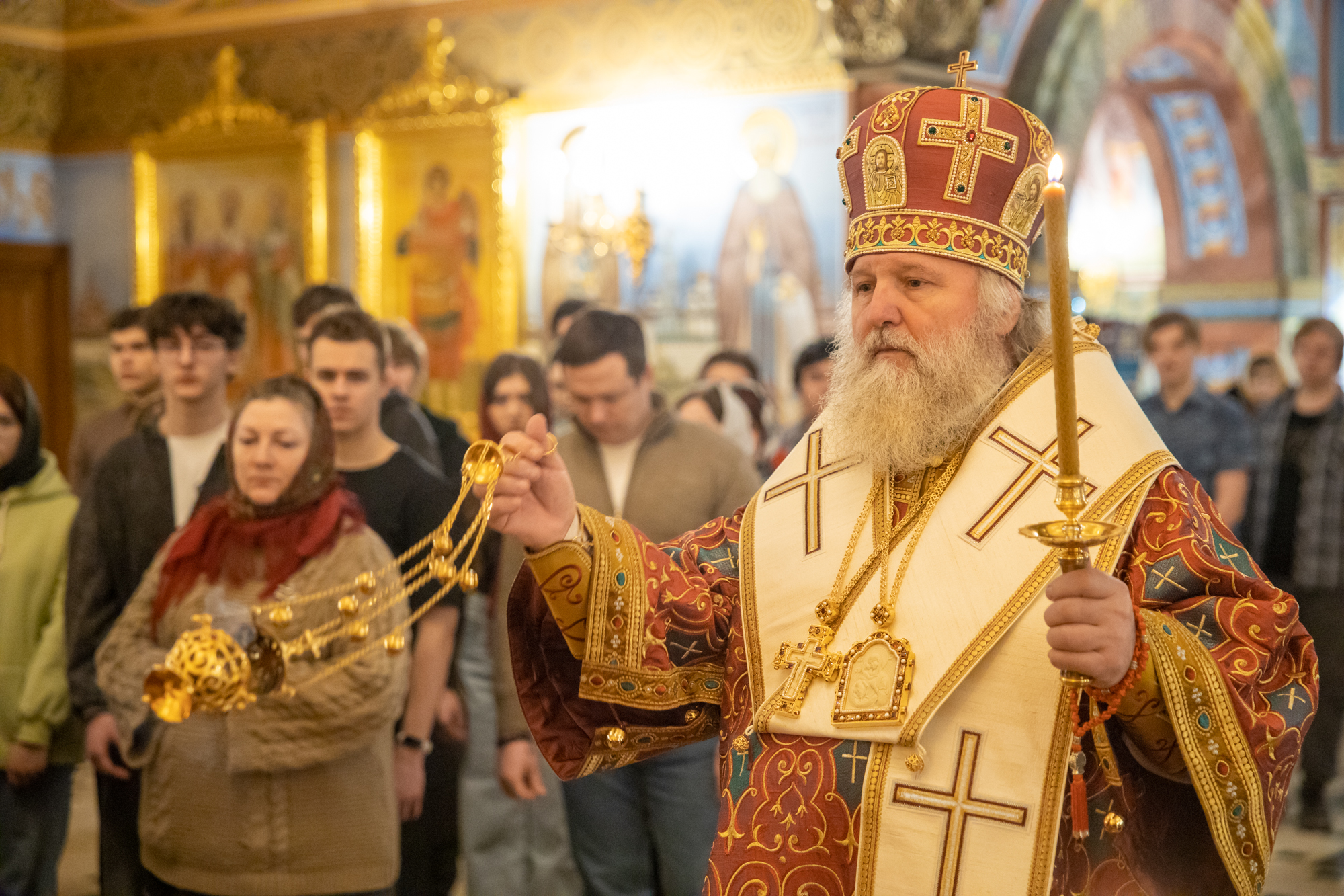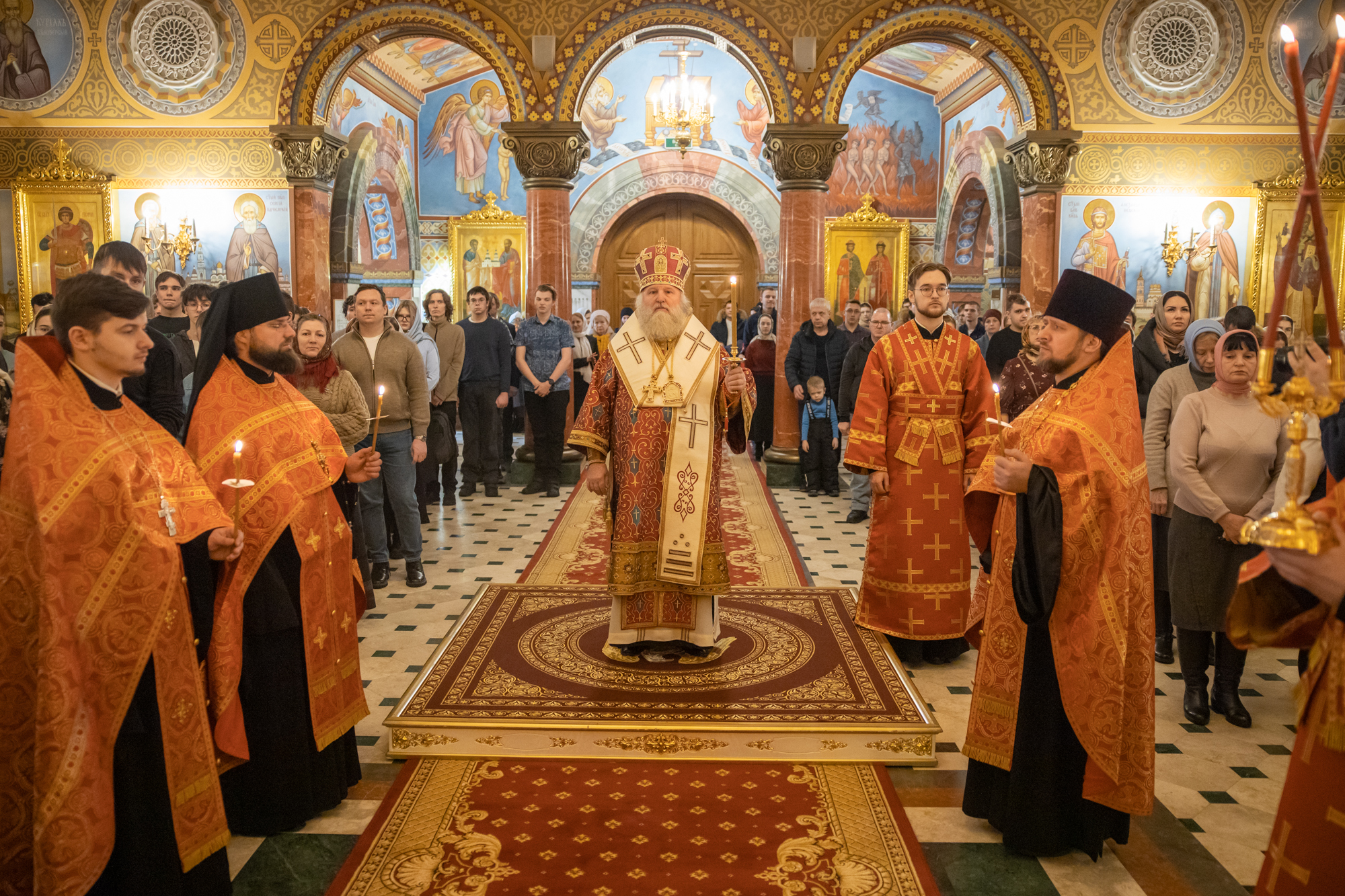 «Дорогие братья и сестры, позвольте от сердца, от души поблагодарить всех за общие молитвы! В эти святые дни Богоявления, Крещения Господа, выпал престольный праздник мученицы Татьяны, которая является покровительницей этого храма и этого города. Я сегодня рад тому, что имею возможность разделить радость этих праздников и службу вместе с вами.