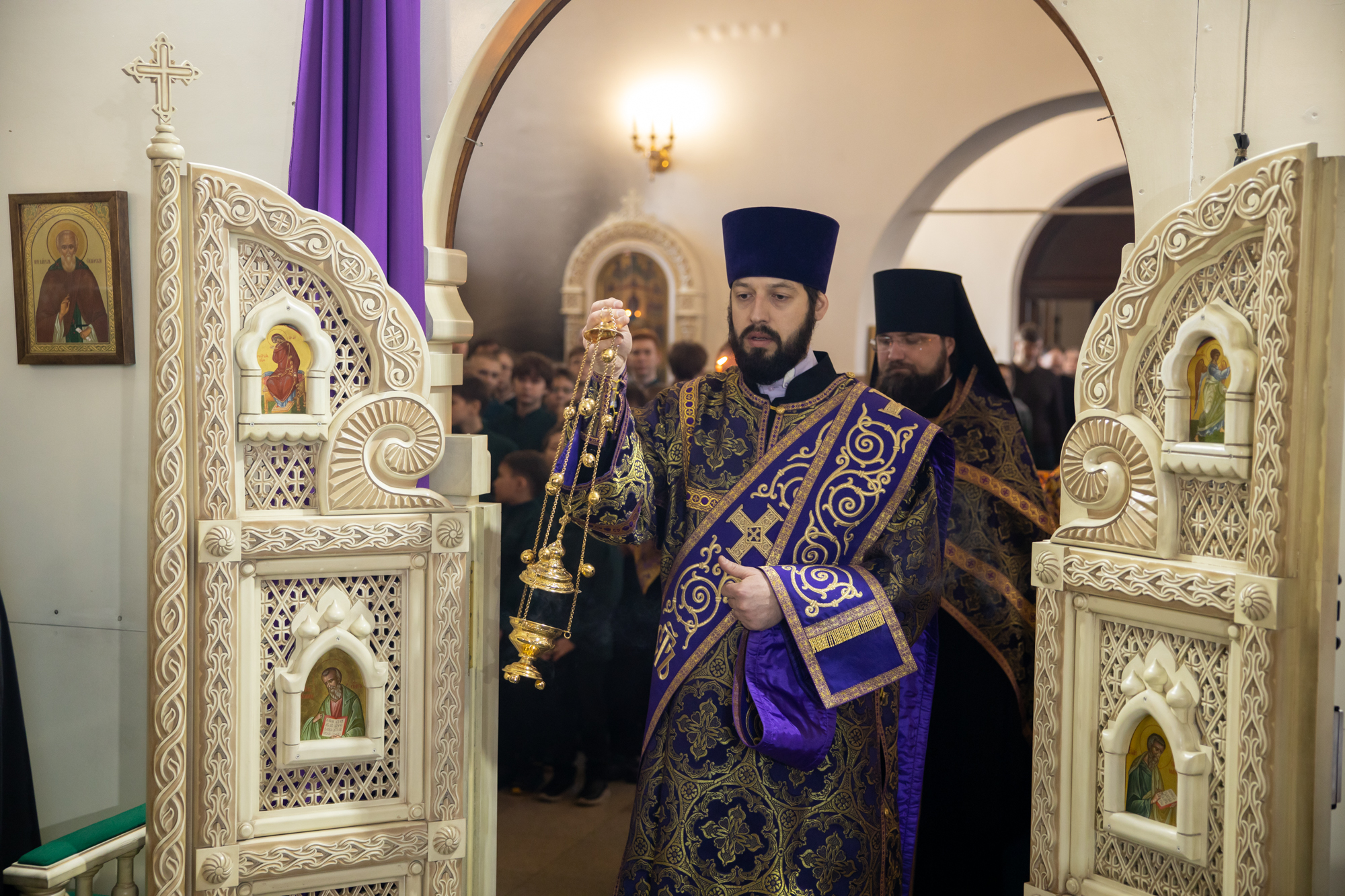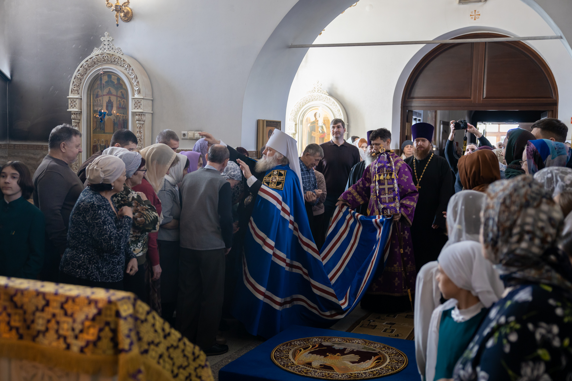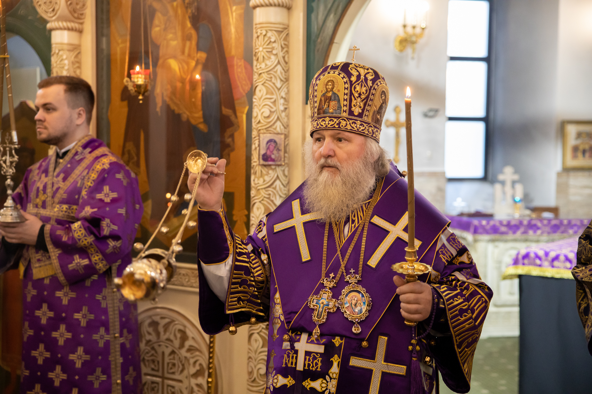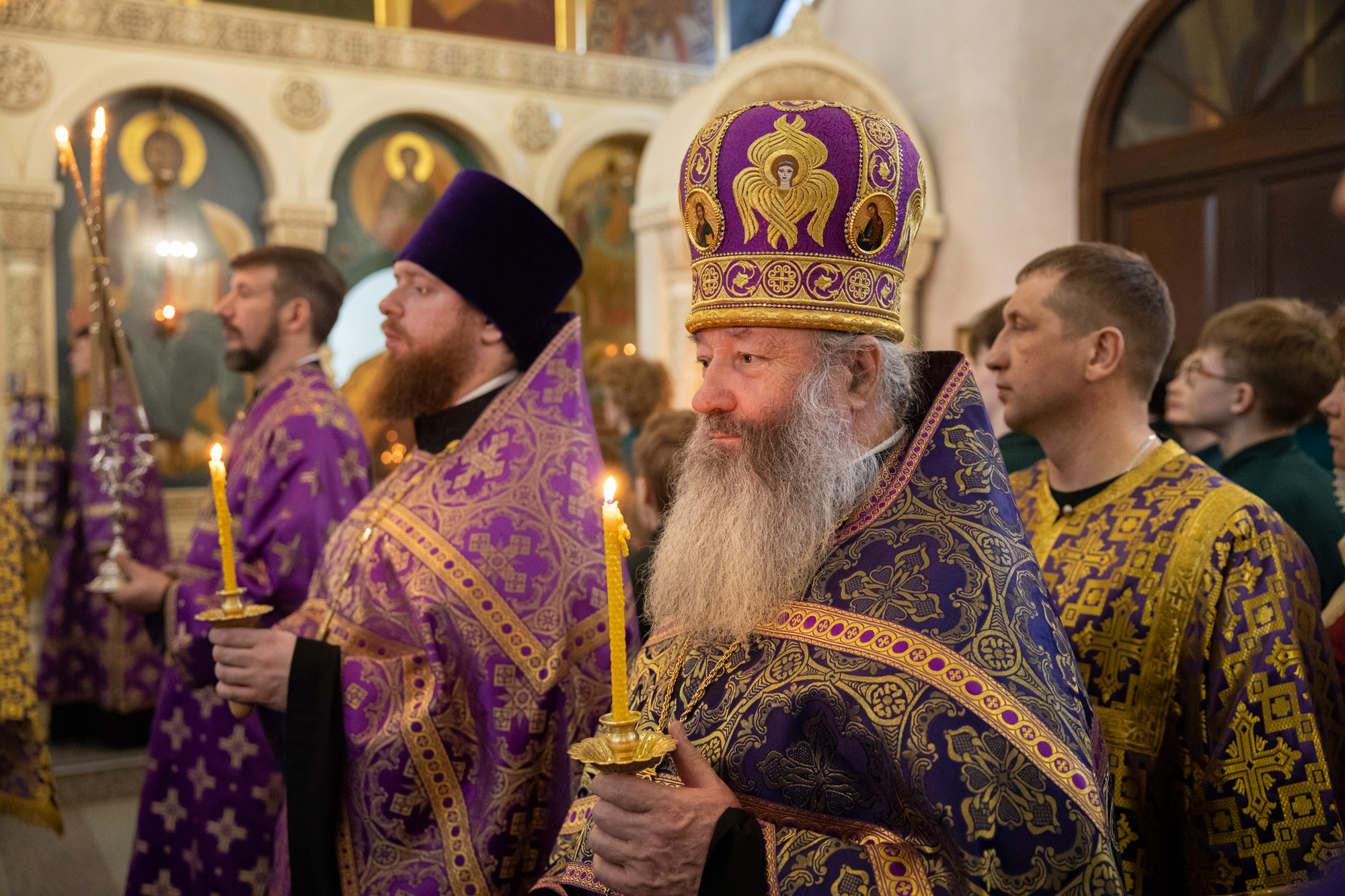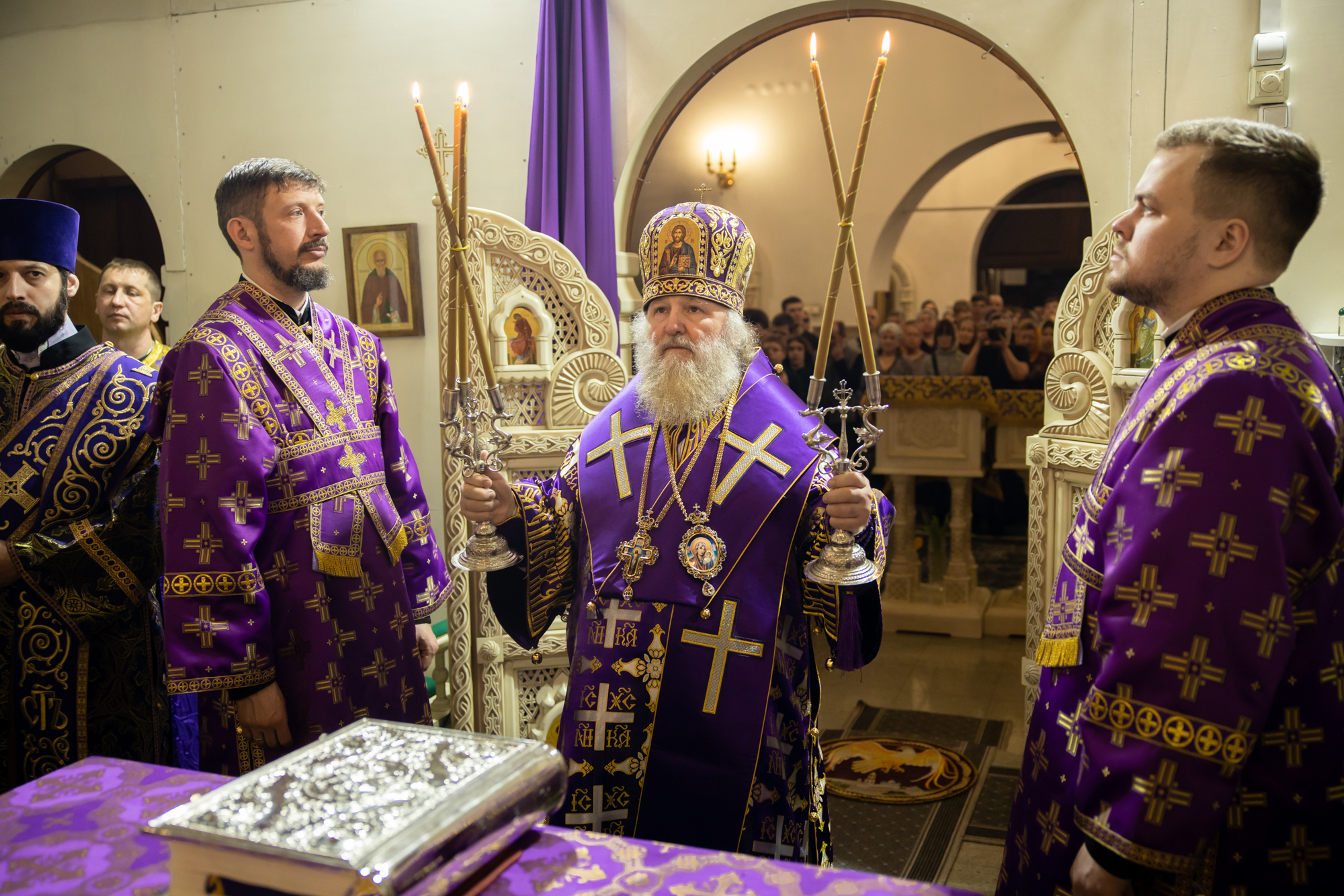 Его Высокопреосвященству сослужили: благочинный Нефтеюганского благочиния протоиерей Николай Матвийчук, секретарь Ханты-Мансийской епархии игумен Антоний (Кирпичев), настоятель храма иерей Александр Сысоев. Диаконский чин возглавил диакон Даниил Матвеев.