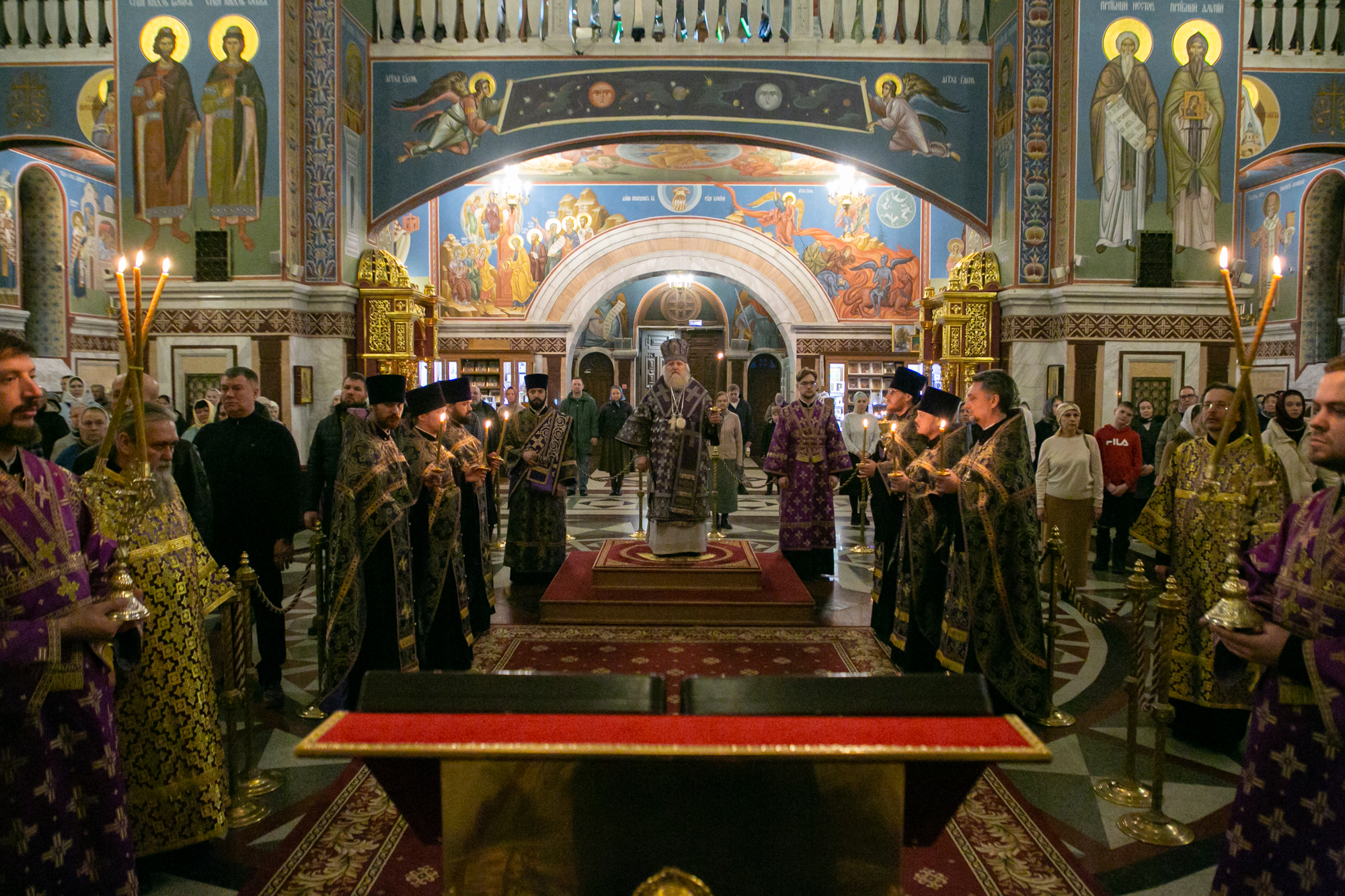 28 марта 2026 года, в канун Недели 5-й Великого поста, митрополит Ханты-Мансийский и Сургутский Павел совершил всенощное бдение в Воскресенском кафедральном соборе г. Ханты-Мансийска.