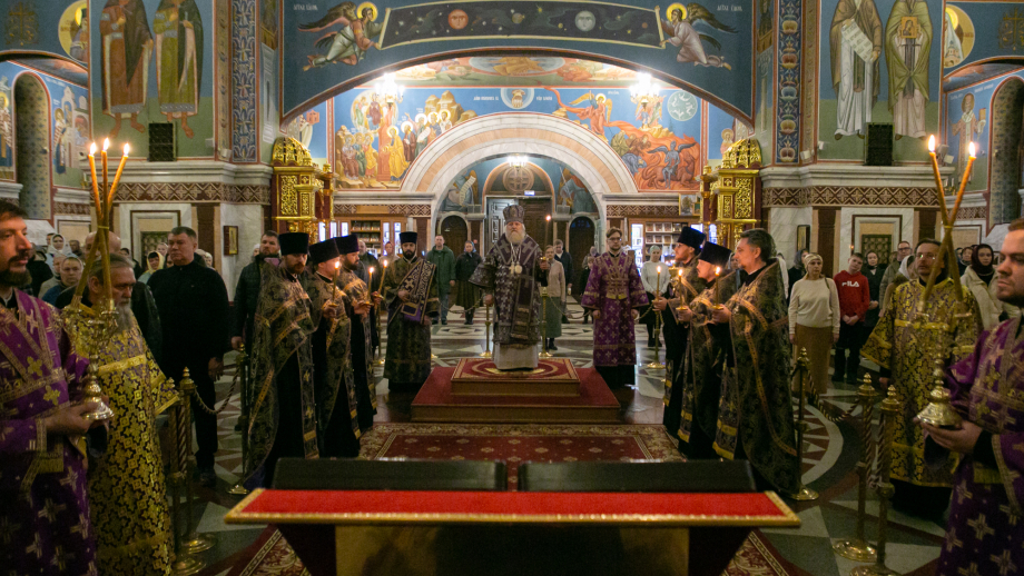 В канун Недели 5-й Великого поста митрополит Павел совершил всенощное бдение в Воскресенском кафедральном соборе г. Ханты-Мансийска