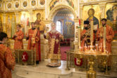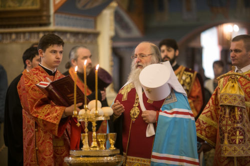 Его Высокопреосвященству сослужили: благочинный Сургутского благочиния протоиерей Антоний Исаков, секретарь Ханты-Мансийской епархии игумен Антоний (Кирпичев), ключарь Преображенского кафедрального собора иерей Дионисий Безносов, иерей Антоний Долгушин, духовенство собора. Диаконский чин возглавил диакон Даниил Матвеев.