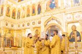 Его Высокопреосвященству сослужили: секретарь Ханты-Мансийской епархии игумен Антоний (Кирпичев), ключарь собора иерей Дионисий Безносов, духовенство собора. Диаконский чин возглавил диакон Даниил Матвеев.