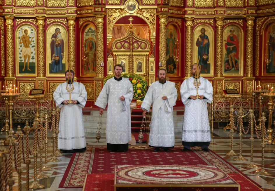 Его Высокопреосвященству сослужило духовенство собора: иерей Нагорный Сергий, иерей Александр Петюр, иерей Вячеслав Фомин, диакон Игорь Логвин, диакон Сергий Барыкин.