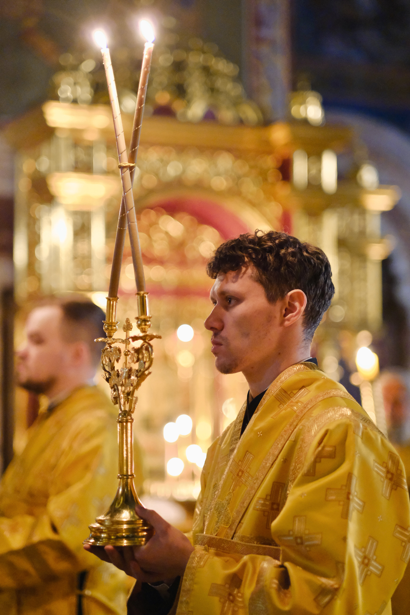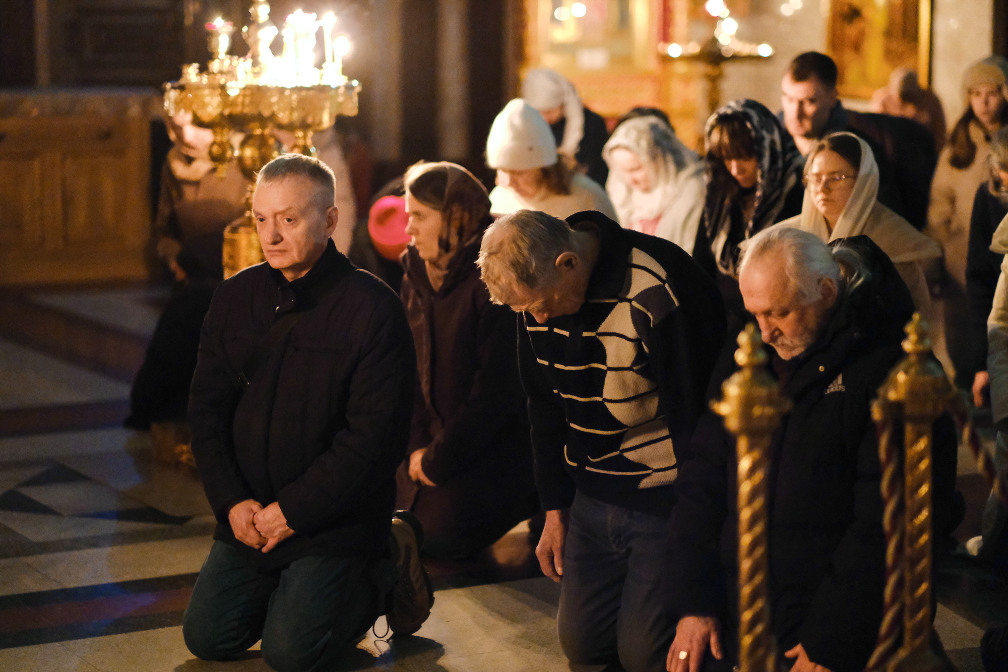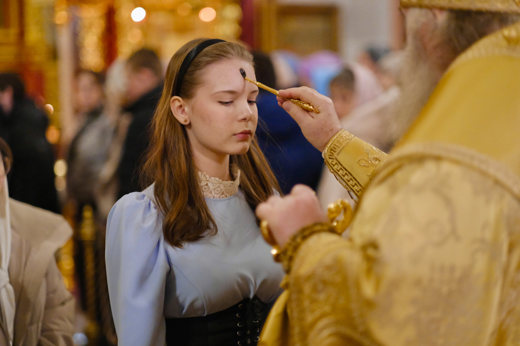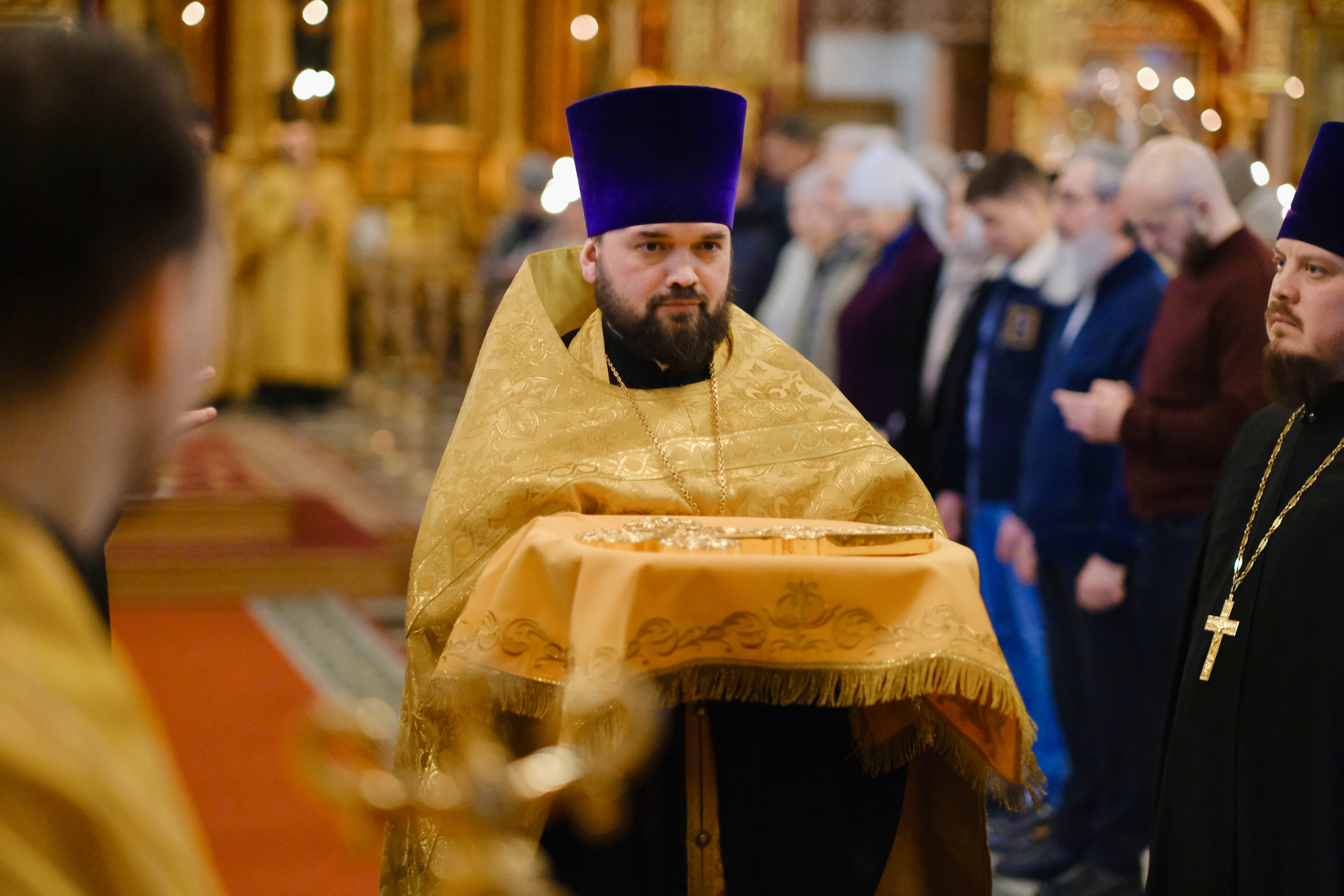21 февраля 2026 года, в канун Недели сыропустной, воспоминания Адамова изгнания, прощеное воскресенье, обретения мощей свт. Тихона, патриарха Московского и всея Руси, митрополит Ханты-Мансийский и Сургутский Павел совершил всенощное бдение в Воскресенском кафедральном соборе г. Ханты-Мансийска.