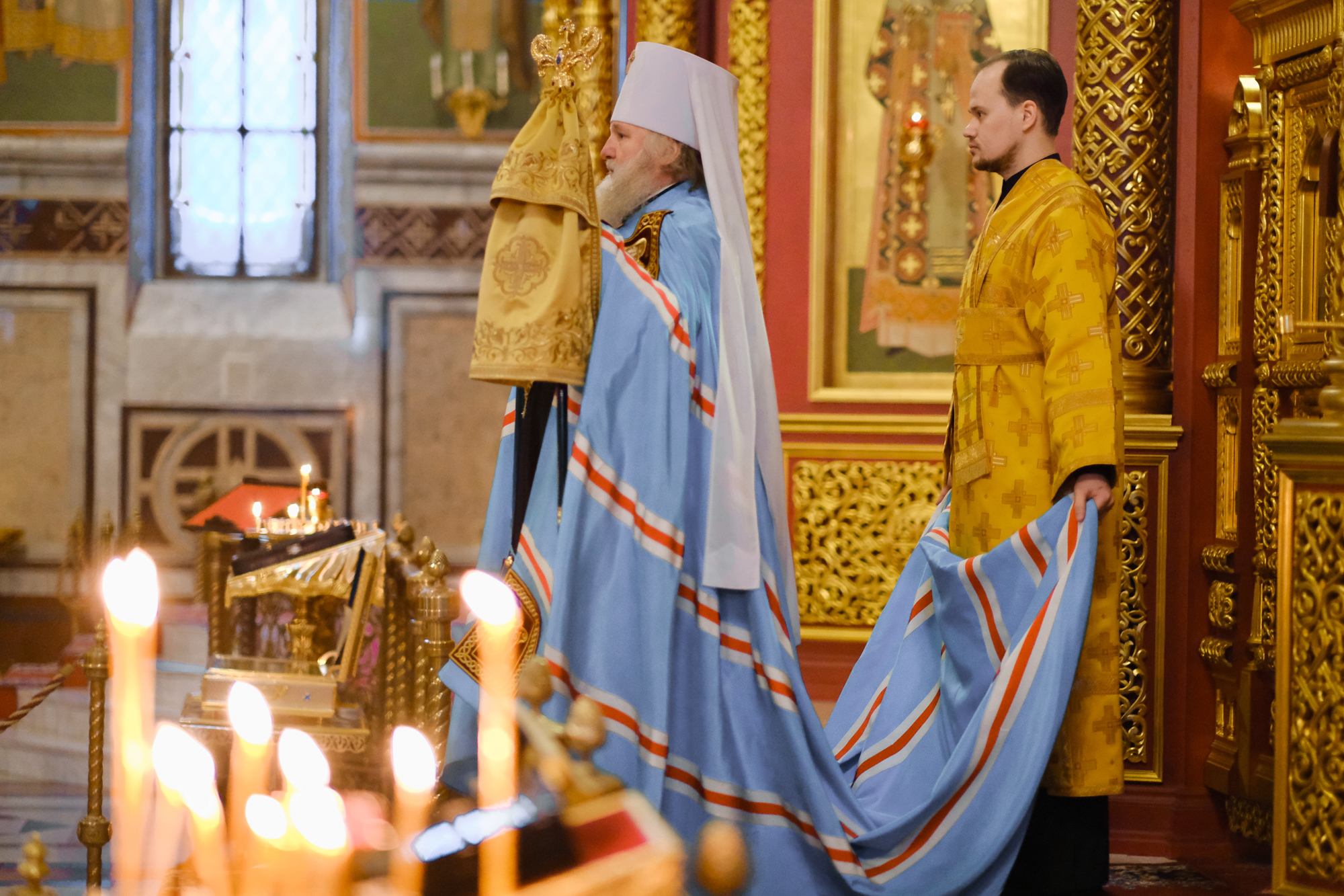 Его Высокопреосвященству сослужили: благочинный Ханты-Мансийского благочиния иерей Димитрий Губанищев, ключарь собора иерей Александр Петюр, духовенство собора.