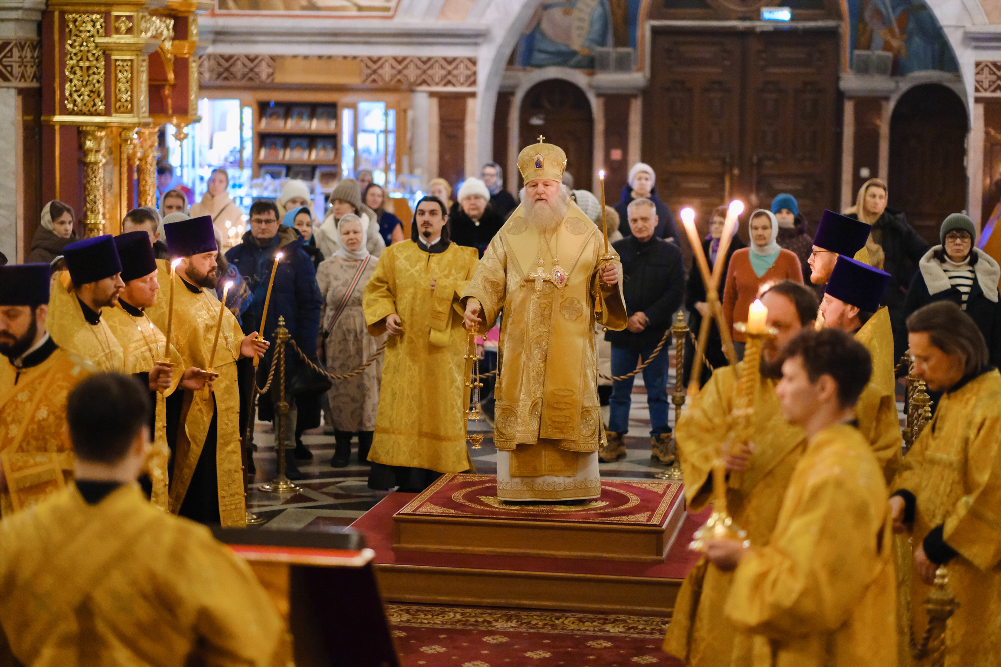 В канун Недели сыропустной митрополит Павел совершил всенощное бдение в Воскресенском кафедральном соборе г. Ханты-Мансийска