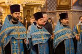 Его Высокопреосвященству сослужили: благочинный Сургутского городского благочиния протоиерей Антоний Исаков, секретарь Ханты-Мансийской епархии игумен Антоний (Кирпичев), ключарь собора иерей Дионисий Безносов, духовенство собора. Диаконский чин возглавил диакон Даниил Матвеев.