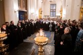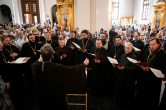 Богослужебные песнопения исполнили архиерейский мужской хор под управлением Дениса Рогова, архиерейский смешанный хор под управлением Марины Литвиненко, хор духовенства Казанской епархии под управлением протоиерея Иоанна Барсукова.
