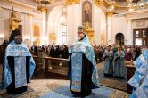 На утрене архипастыри и духовенство прочитали акафист Пресвятой Богородице перед чтимым списком Казанской иконы Божией Матери.
