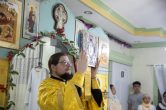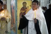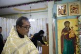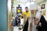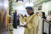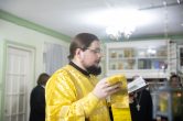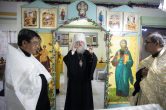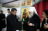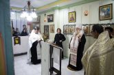 Его Высокопреосвященству сослужили: настоятель храма иерей Роман Буниэль, иерей Алексий Бергадо. Диаконский чин возглавил иеродиакон Никодим (Пирховский).