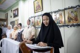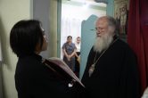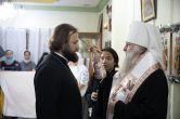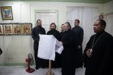 «Дорогие отцы, братья и сестры, позвольте всех поздравить с праздником Сретения Господа Нашего Иисуса Христа и поблагодарить за общие молитвы! Господь явил свою милость и сподобил нас через 3 года прибыть на эту землю и встретиться снова с вами, и разделить радость праздничного дня. И конечно, мне вдвойне приятно встретиться со священнослужителями, которых я рукополагал и в Ханты-Мансийске и здесь, встретить бывших наших студентов. Некоторые, как Дмитрий, уже закончили обучение, некоторые ещё учатся. Рад вместе со всеми вами вознести молитвы ко Господу, чтобы Он услышал нас и послал бы всё необходимое в нашей дальнейшей жизни. Ещё раз всех поздравляю с праздником, желаю, чтобы, действительно, каждый из нас принял бы в объятия своей души Богомладенца, а когда будет в нашей душе Господь, то тогда нам не страшны никакие невзгоды. С Богом по жизни идти легко, а вот без Бога — невозможно. Как Симеон Богоприимец принял Господа в свои руки, так и нам бы принять сердцем и душой нашего Спасителя и конечно же Его учение, чтобы мы жили именно по заповедям Божьим.Помоги нам в этом Господь!»